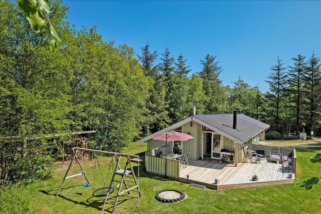 Dette dejlige sommerhus i Rødhus er den perfekte ramme for en afslappende ferie med familien eller venner. Huset ligger på en stor, ugeneret grund, hvor der er masser af plads til både udendørs spil og leg. Den store terrasse indbyder til hyggelige stunder i solen, mens brændeovnen i stuen skaber en varm og indbydende atmosfære på de køligere dage. Med både sauna og spabad er wellnessoplevelsen også i top – kort sagt, her får du alt, hvad du behøver for den perfekte ferie!