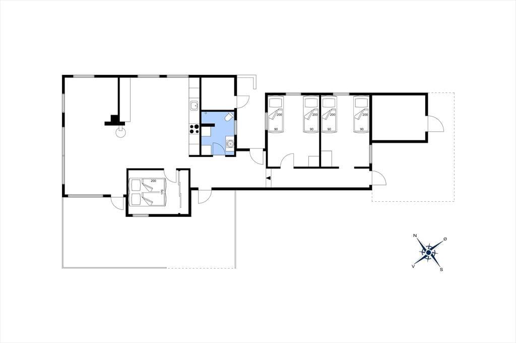 Indenfor mødes du af en hyggelig og lys stue, hvor det naturlige lys strømmer ind gennem de store vinduer og skaber en indbydende atmosfære. Her er der god plads til at slappe af med en god bog foran brændeovnen, eller samles med familien til spil og samtaler. Den åbne planløsning mellem stuen og køkkenet gør det nemt at være sammen, og der er rig mulighed for både afslapning og samvær. Den hyggelige stemning er perfekt til feriedage, hvor der er tid til at lade op og nyde hinandens selskab. Hele huset emmer af den klassiske sommerhusstemning, og her kan du virkelig få følelsen af at være langt væk fra hverdagens stress og jag.