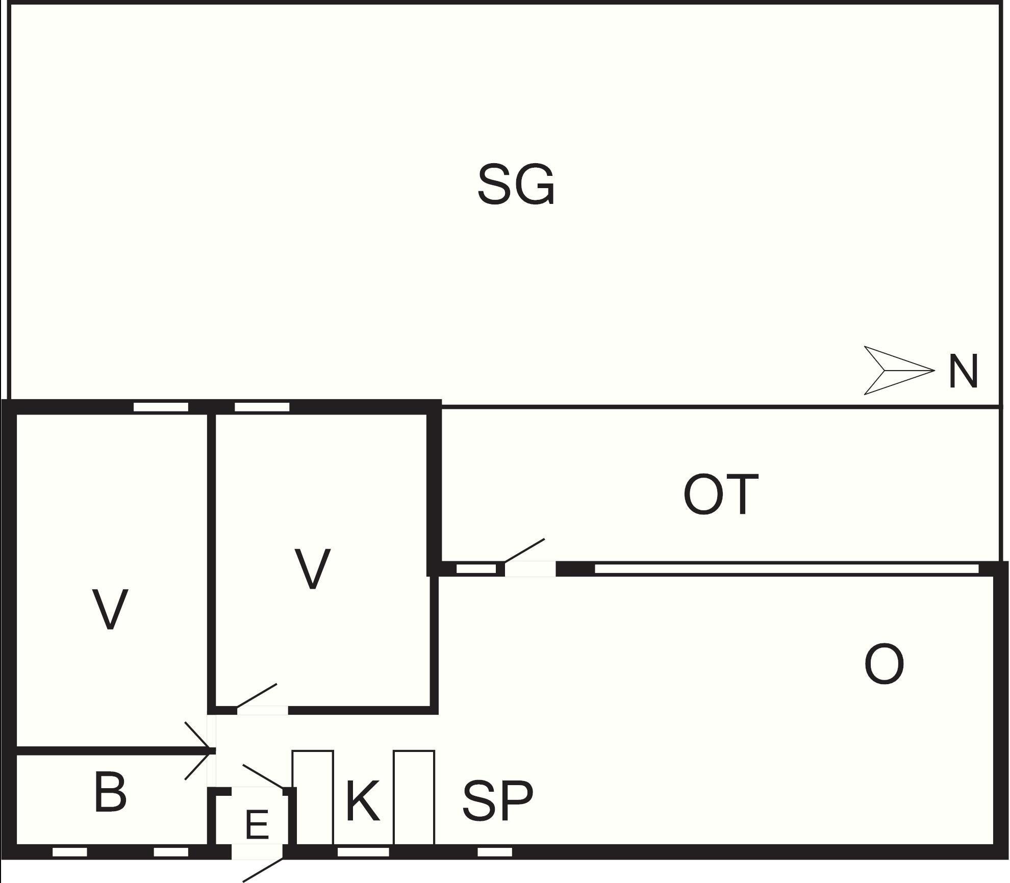Indenfor byder det åbne køkken-alrum på et hyggeligt samlingspunkt til madlavning, spisning og afslapning. De store vinduespartier giver et fantastisk lysindfald, som gør stuen lys og indbydende. Sommerhuset rummer to soveværelser – et med dobbeltseng og et familieværelse med dobbeltseng og to køjepladser – samt et rummeligt badeværelse. Brændeovnen sørger for både varme og hyggelig stemning.