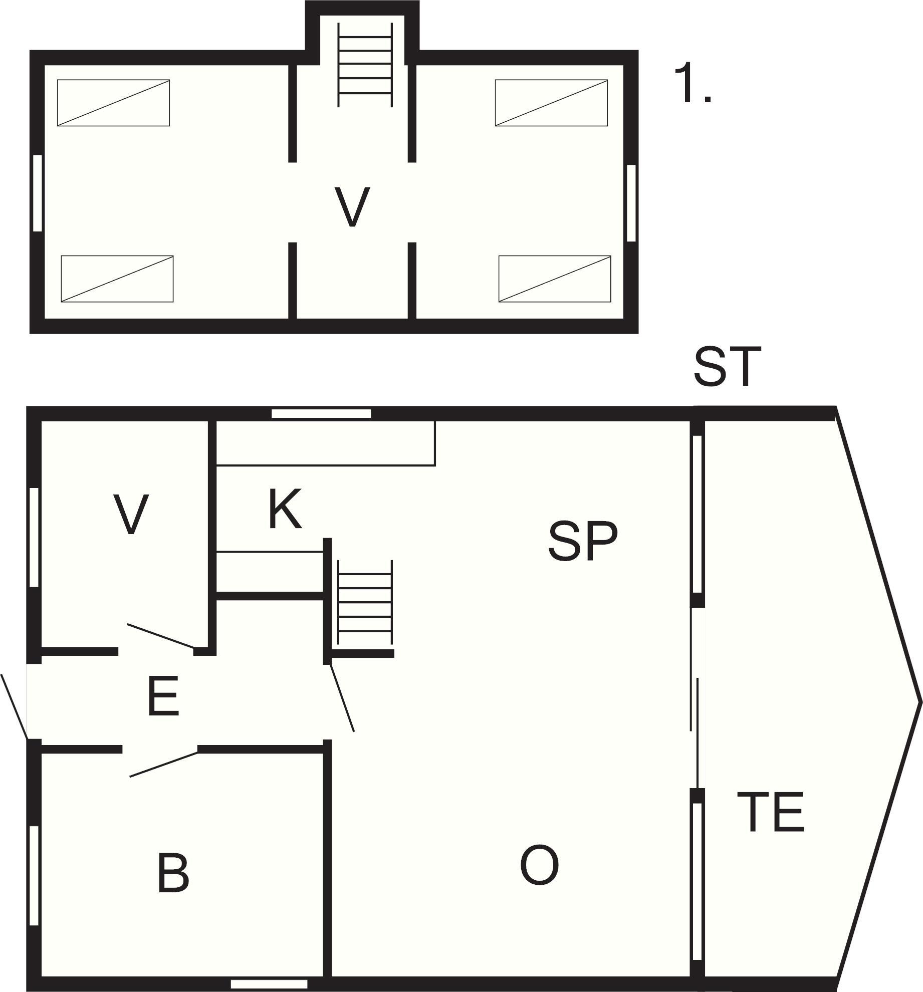 Sommerhus i 2 etager og med badeværelse fra 2001. Helt ugenert beliggende på en 4500 m² stor klitgrund yderst ved hedeareal. Huset er indrettet med 25 m² opholdsstue i åben forbindelse med køkkenet, et soverum med dobbeltseng i stueplan, et soverum med fire senge på første sal (egentlig to rum men kun adskilt ved reposen, ikke ved dør), badeværelse med gulvvarme, garage samt terrasser. Der er fladskærms-tv, og alle sovepladser er forsynet med gode madrasser. Indretningen er personlig med hovedvægten lagt på trivsel og hygge. Pladsen er godt udnyttet, således at ophold indendørs på de lidt køligere dage bliver behageligt, mens de varme solskinsdage naturligvis tilbringes på terrassen eller klitgrunden.
