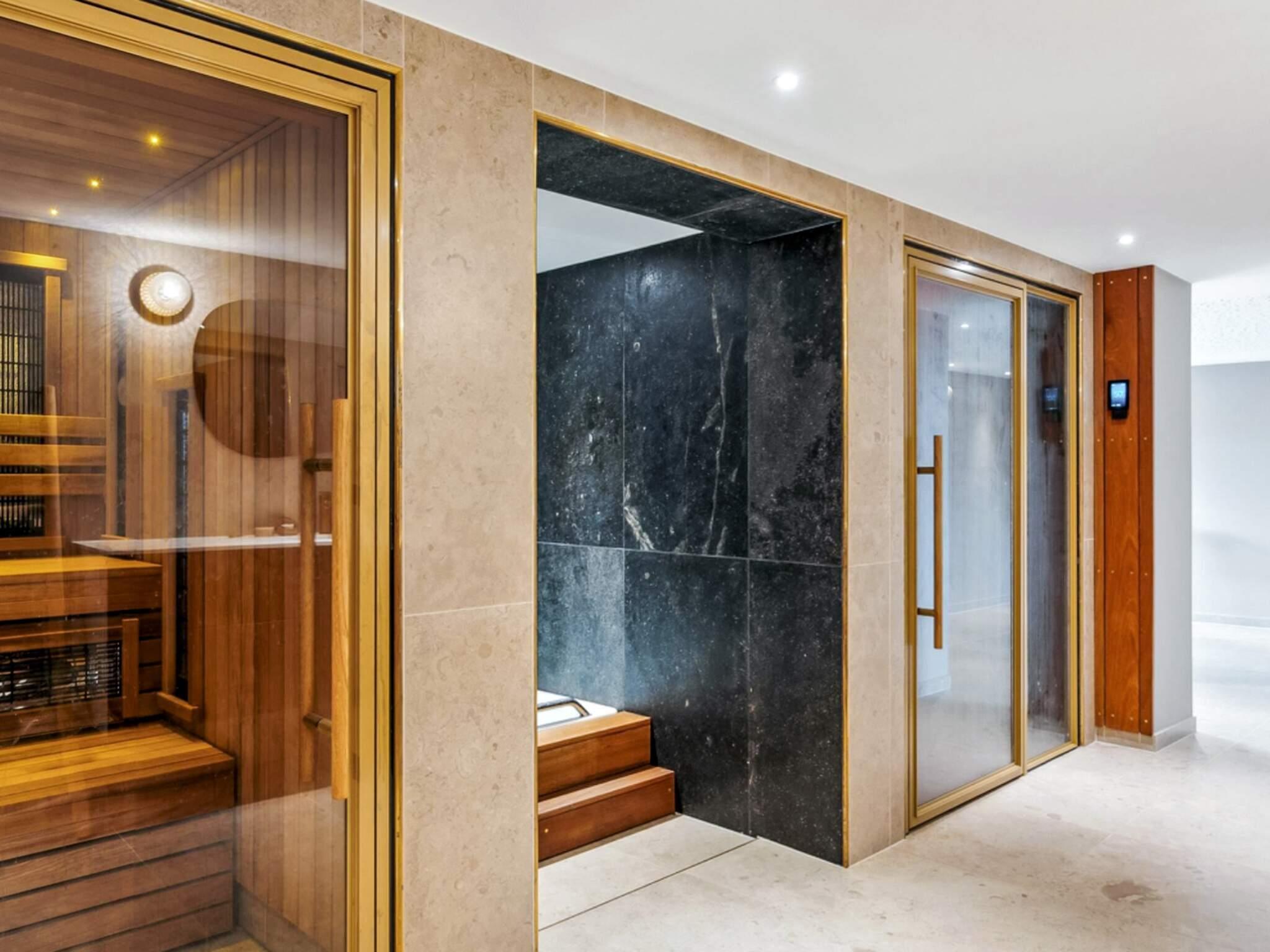 Huset har fire stilfulde soveværelser - tre med dobbeltsenge og et med to dobbeltsenge - samt tre moderne badeværelser, et med badekar og et andet med dampbruser. Nedenunder kan gæsterne nyde en privat hjemmebiograf og et skønt wellness-område med infrarød sauna, dampbad og koldtvandsbassin. Huset har også gulvvarme i både stueetagen og kælderen og drives af en effektiv luft-til-vand-varmepumpe.