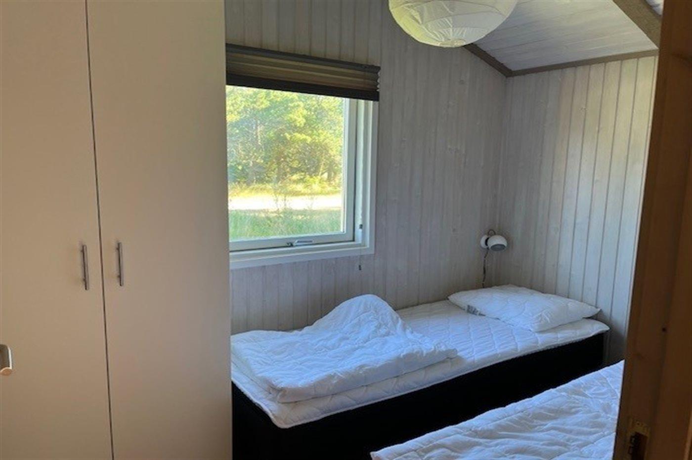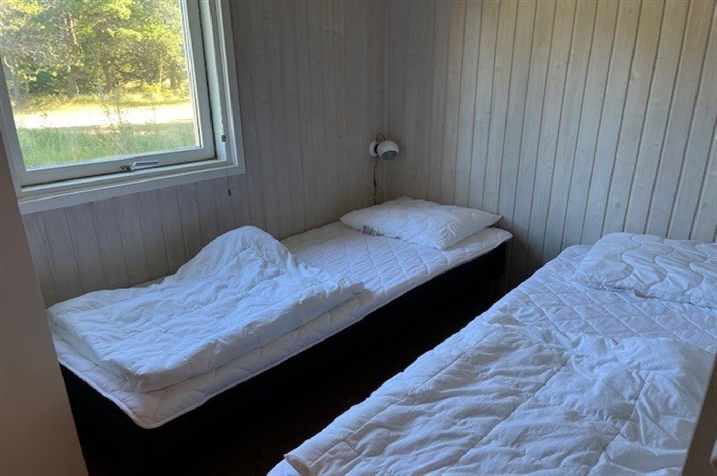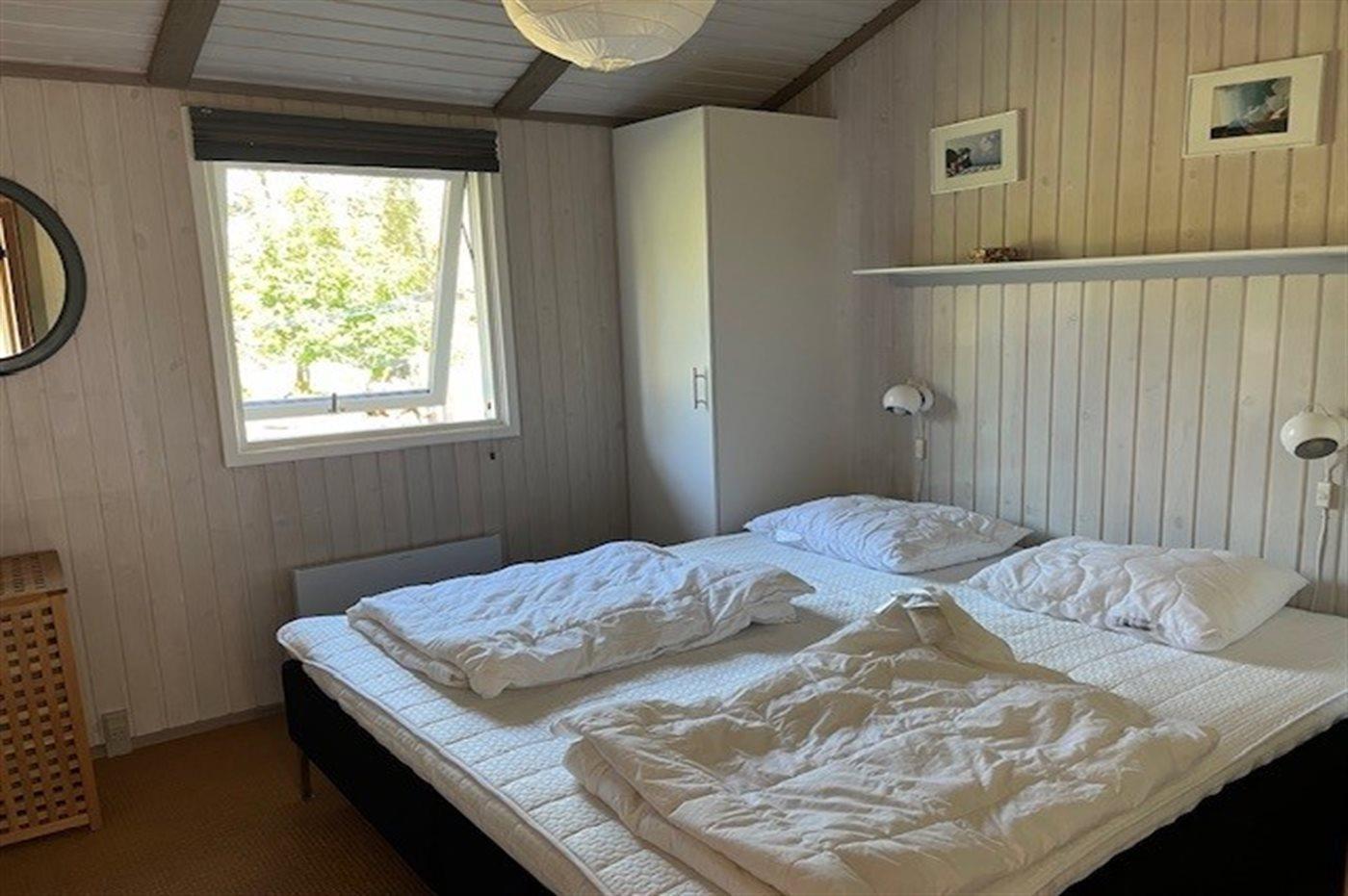 Der er i alt 3 soveværelser. Sovepladserne fordeler sig på: 2 sovepladser i dobbeltseng. 2 sovepladser i enkeltsenge. 2 sovepladser i køjeseng.