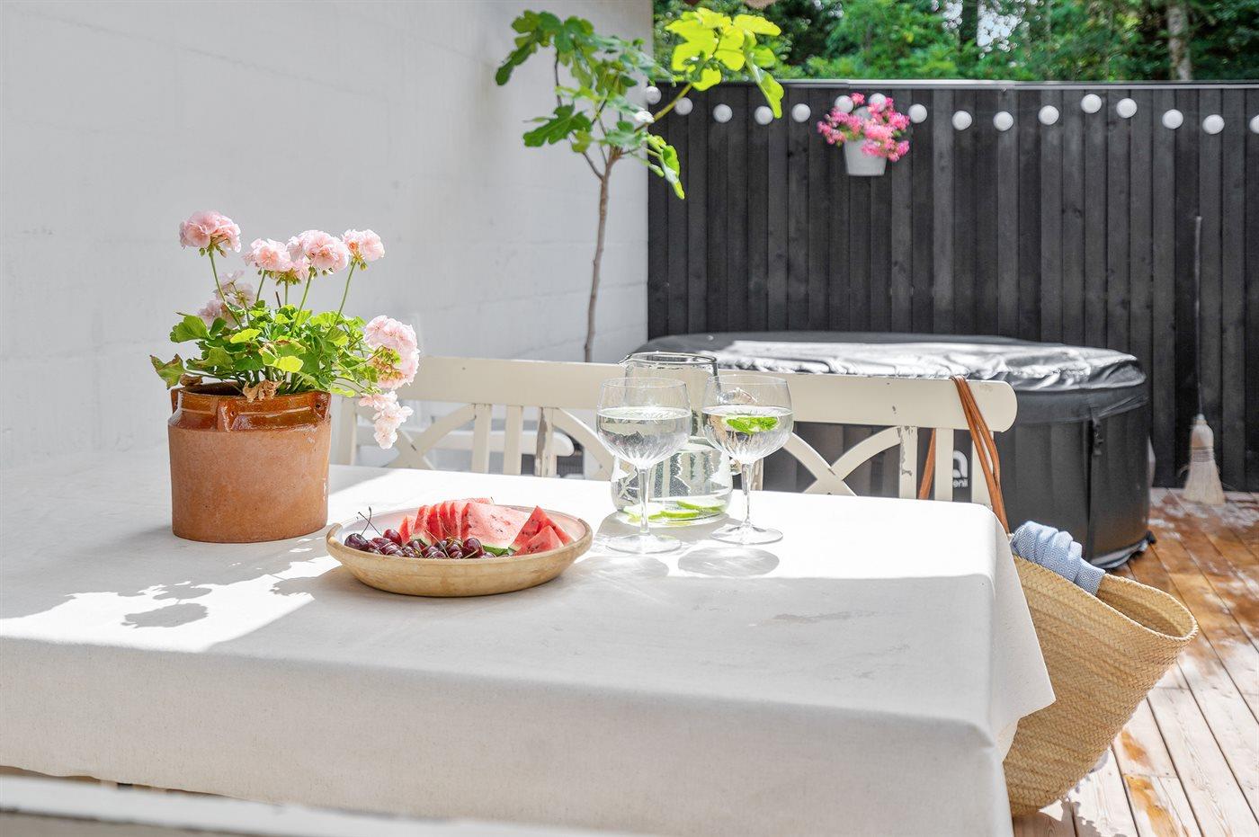Køkkenet er udstyret med 1 køleskab. Der er 4 induktionskogeplader, varmluftovn, mikrobølgeovn samt opvaskemaskine samt opvaskemaskine (bordmodel).