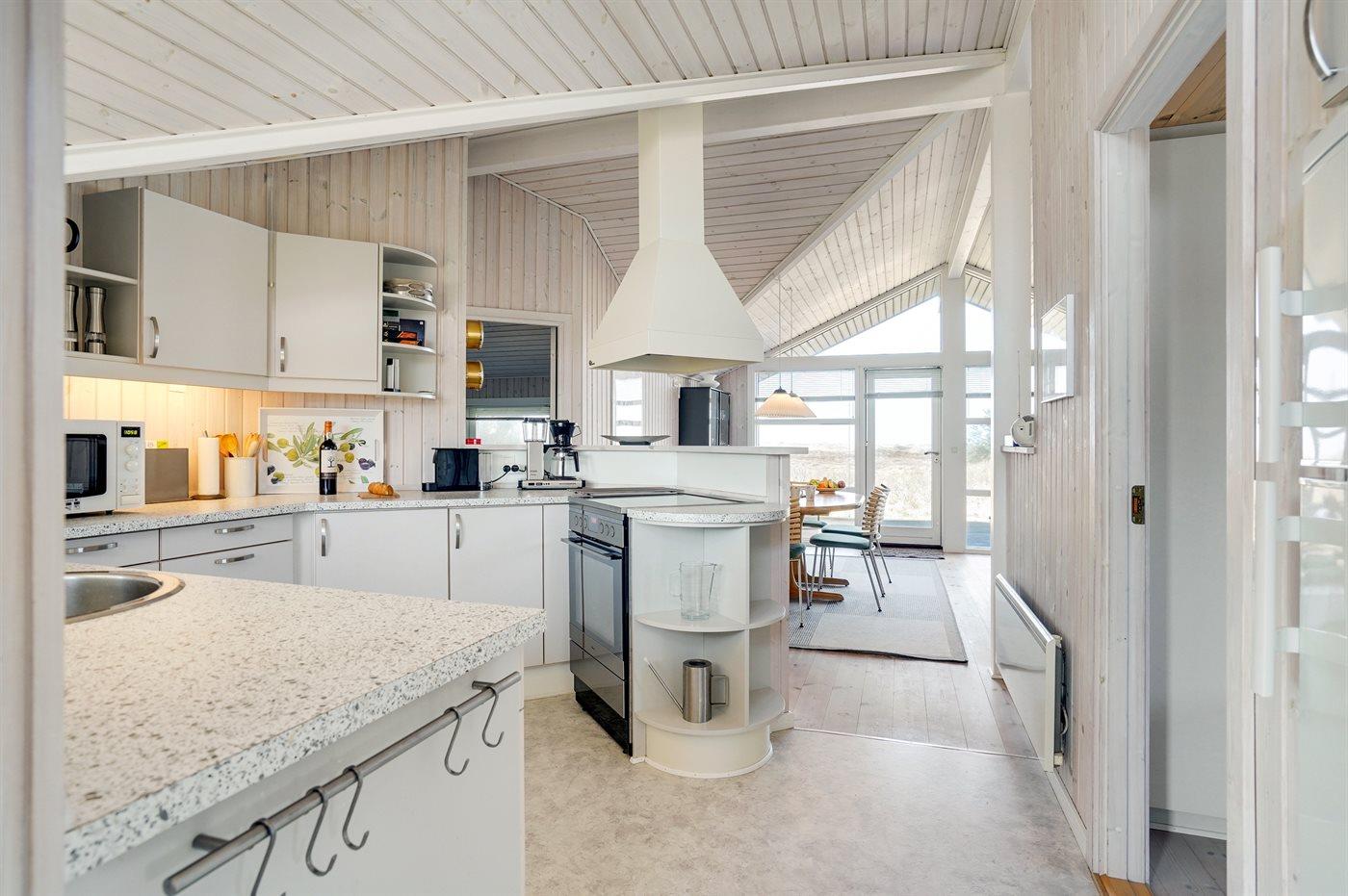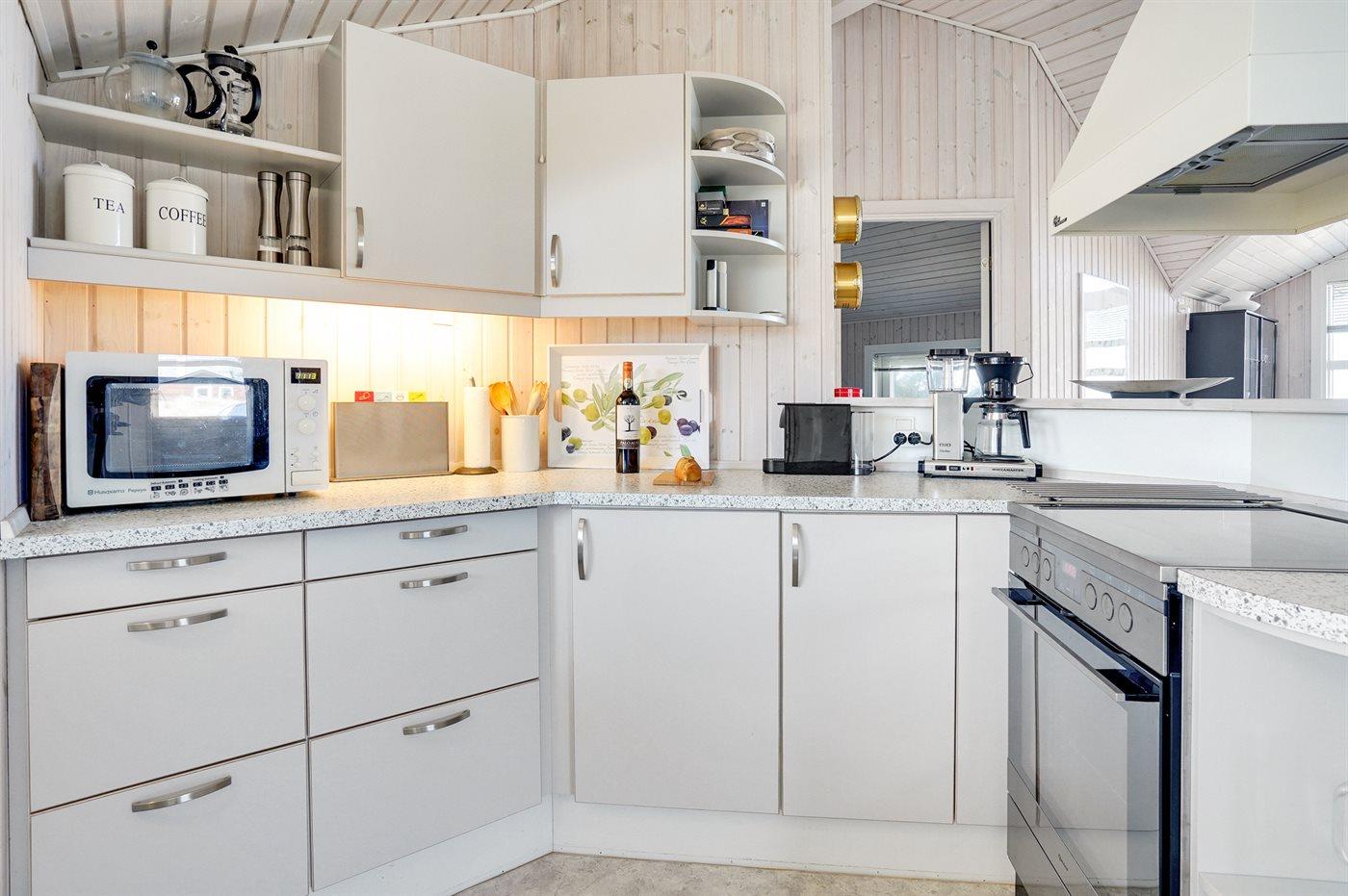 Køkkenet er udstyret med 1 køleskab. Der er 4 induktionskogeplader, varmluftovn, mikrobølgeovn samt opvaskemaskine.