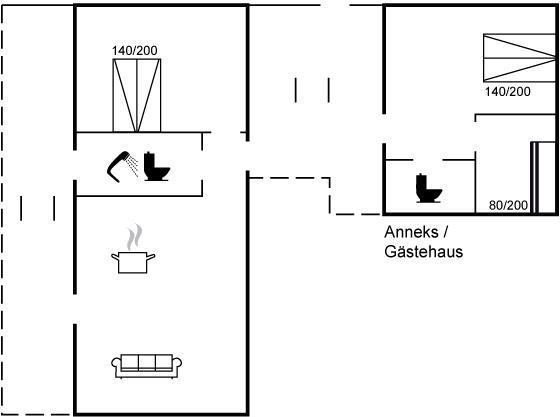 Der er i alt 2 soveværelser. Sovepladserne fordeler sig på: 4 sovepladser i dobbeltsenge. 2 sovepladser i køjeseng. 4 af disse sovepladser befinder sig i anneks.