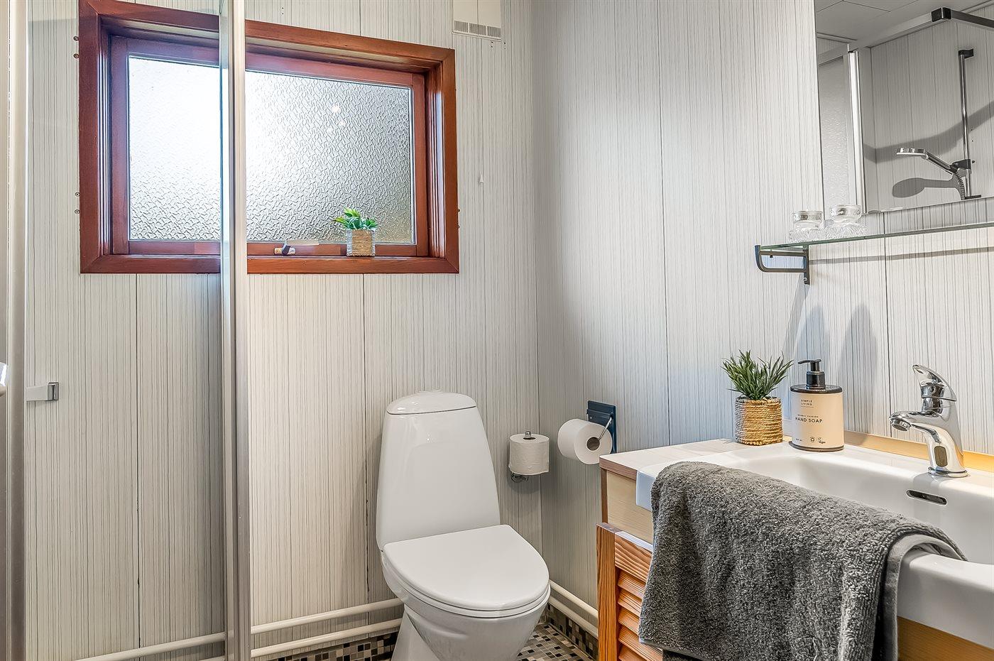 Der er 1 badeværelse med bruseniche og 1 toilet.