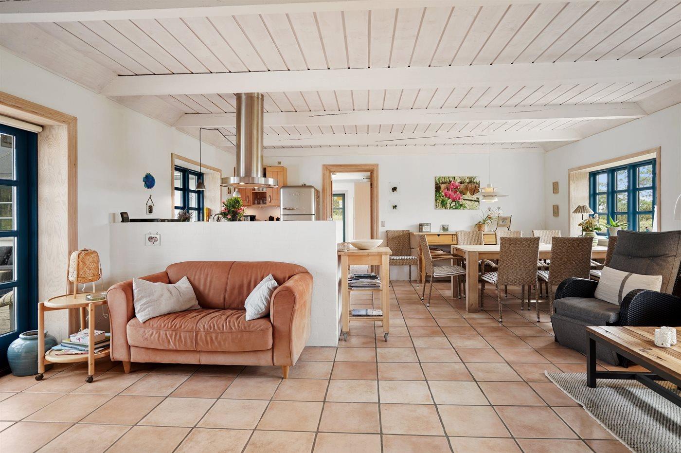 Det moderniserede hus er lyst og hyggeligt indrettet med god plads, flere badeværelser samt dejligt køkken-alrum og stue med udgang til solrige terrasser. Ideelt til afslapning, naturoplevelser og ferie tæt på havet.