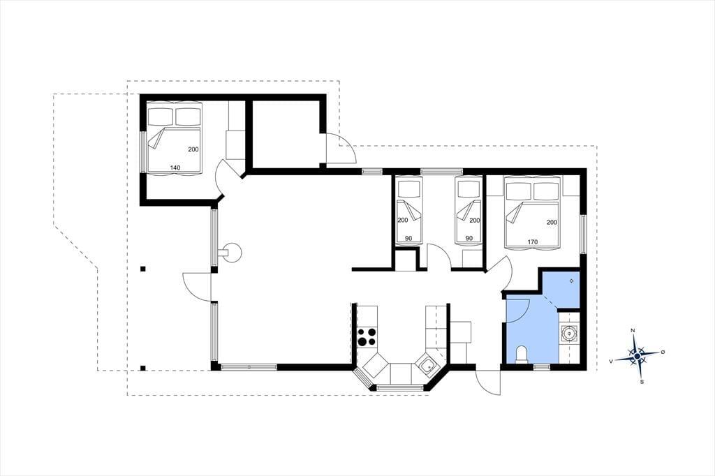 Huset har masser af lysindfald og loft til kip. Her er et åbent køkken, som er veludstyret og i åben forbindelse med stuen, som også har brændeovn og en dejlig spiseplads. Her er god plads til jer alle og i stuen, kan I hygge jer sammen og nyde hinandens selskab. På kolde dage kan I tænde op i brændeovnen og hygge jer inden døre med et brætspil og måske hjemmebagte boller, imens brændet knitrer i brændeovnen. Fra stuen er der udgang til terrassen og haven. Huset er indrettet med 3 soveværelser og 1 badeværelse med toilet, håndvask og bruseniche, samt vaskemaskine - tørretumbleren finder I i udhuset. I dette hus er der god mulighed for at trække sig tilbage og få en lur eller læse en bog.