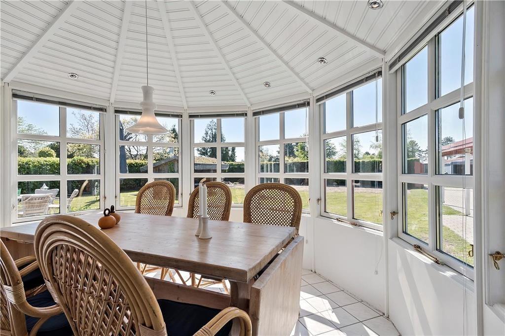 Dejlig lukket grund med carport, bålsted og fint shelter, hvor man kan ligge og nyde aftensolen og en god nats søvn i den frie og friske stevnske natur. Gode havemøbler. God plads til leg med børnene græsplænen. Et super dejligt hus til en rigtig hyggelig familieferie – eller bare en hyggelig parferie med en god bog og benene oppe for total afslapning – væk fra dagens stress og jag.