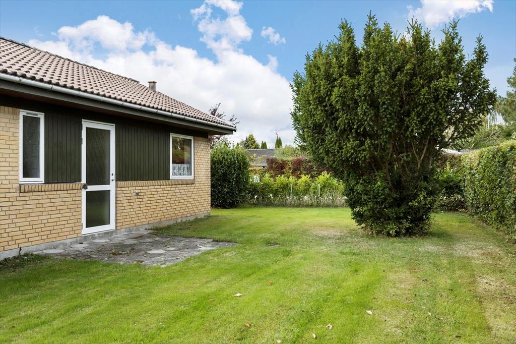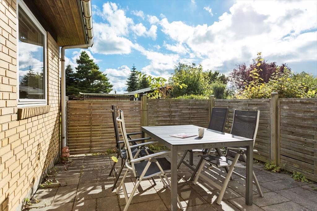 Hyggeligt murstensferiehus tæt på Rødvigs badestrand med afskærmet terrasse og udendørs pejs.