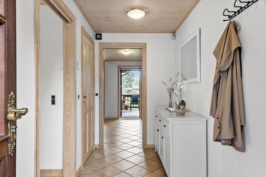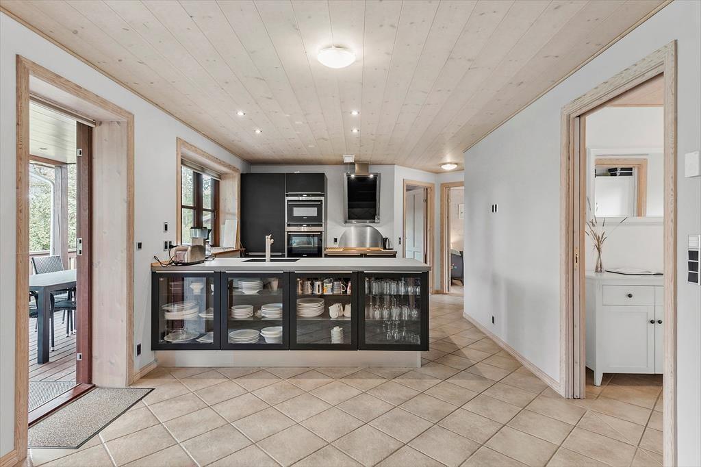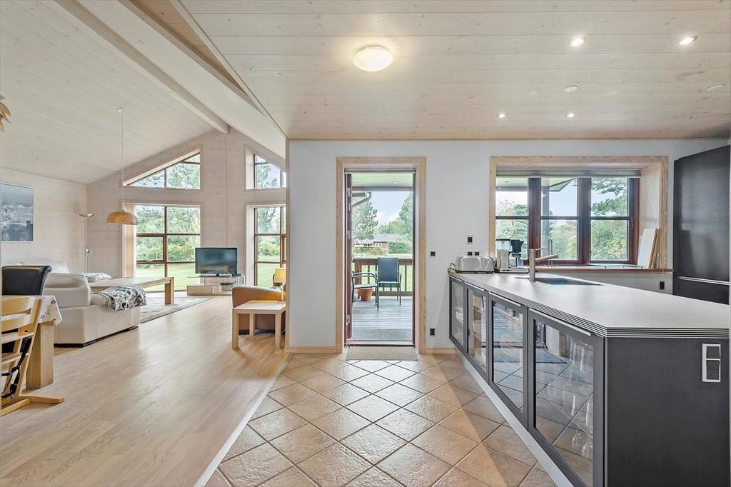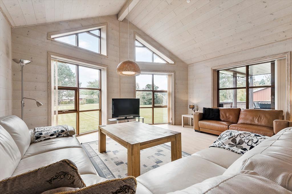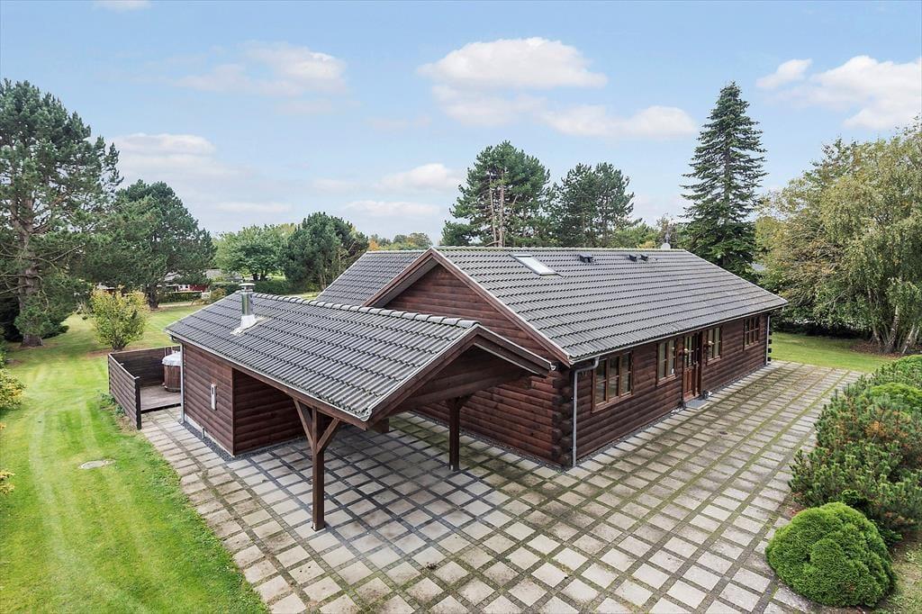 Smukt og førsteklasses luksusferiehus (bjælkehus) i rigtig god kvalitet. Beliggende på en dejlig stor grund. Huset er rummeligt, lyst og komfortabelt. Indeholder: Entre og bryggers. Stort og åbent lækkert køkken. Opholdsstue med udgang til stor delvis overdækket træterrasse. 3 Soverum: 2 enkeltsenge-elevationssenge, 2 enkeltsenge, og 1 dobbeltseng. God trappe fra stuen til hems med 2 madrasser.
