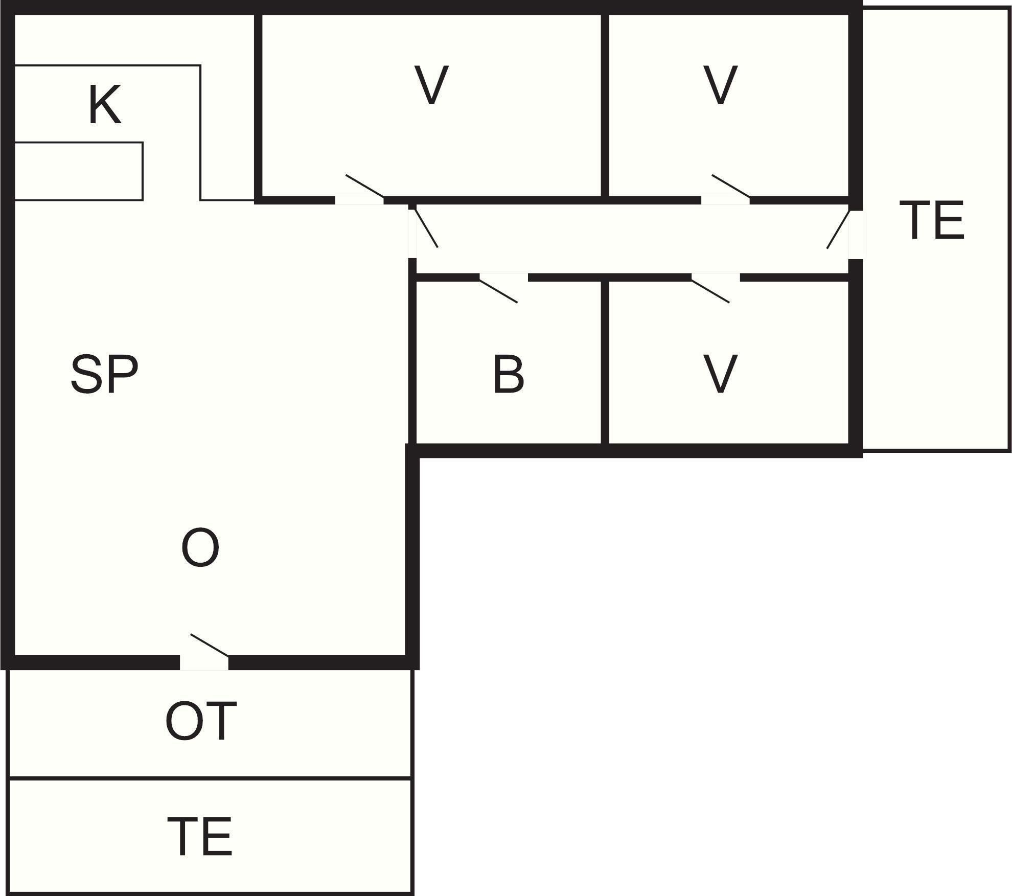 3 Soveværelser: (1DS)+(2S)+(2S), barneseng