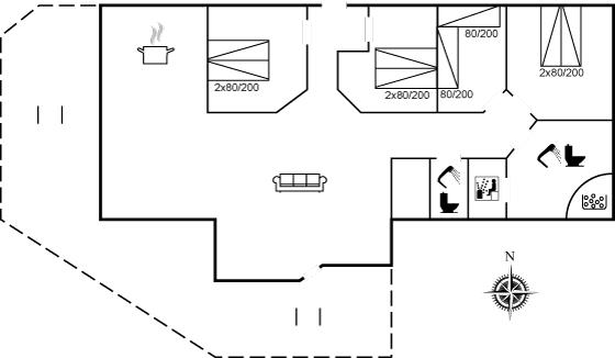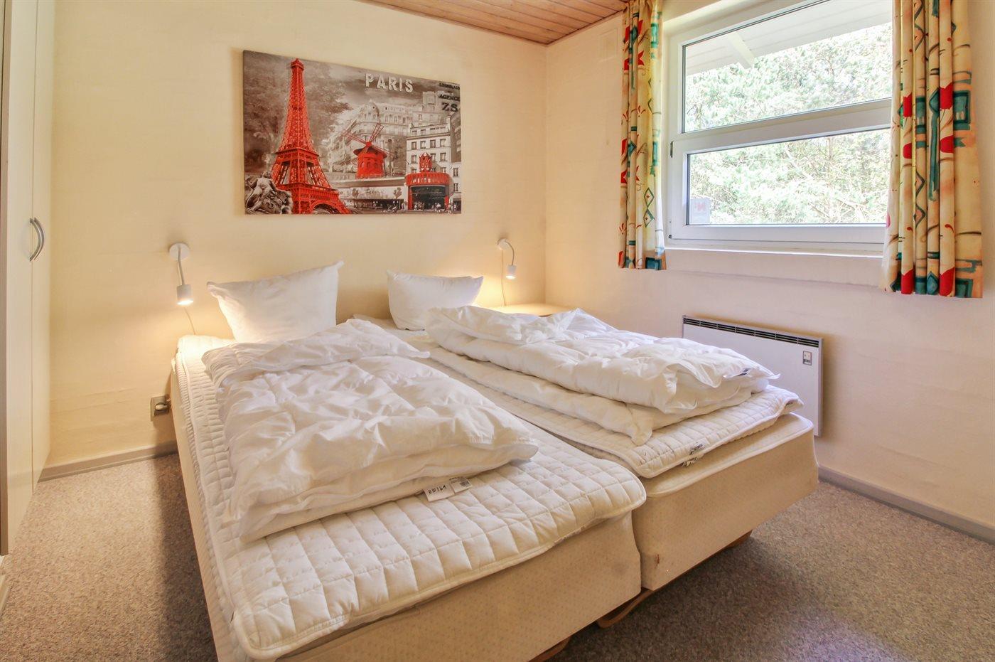 Der er i alt 4 soveværelser. Sovepladserne fordeler sig på: 6 sovepladser i dobbeltsenge. 2 sovepladser i enkeltsenge. Derudover er der 1 stk. barneseng.