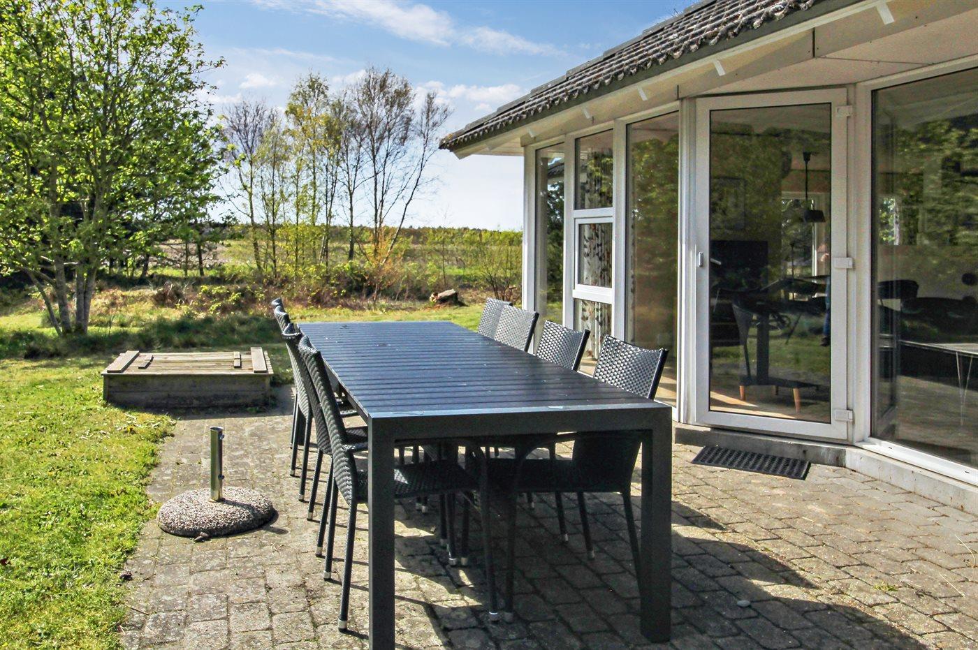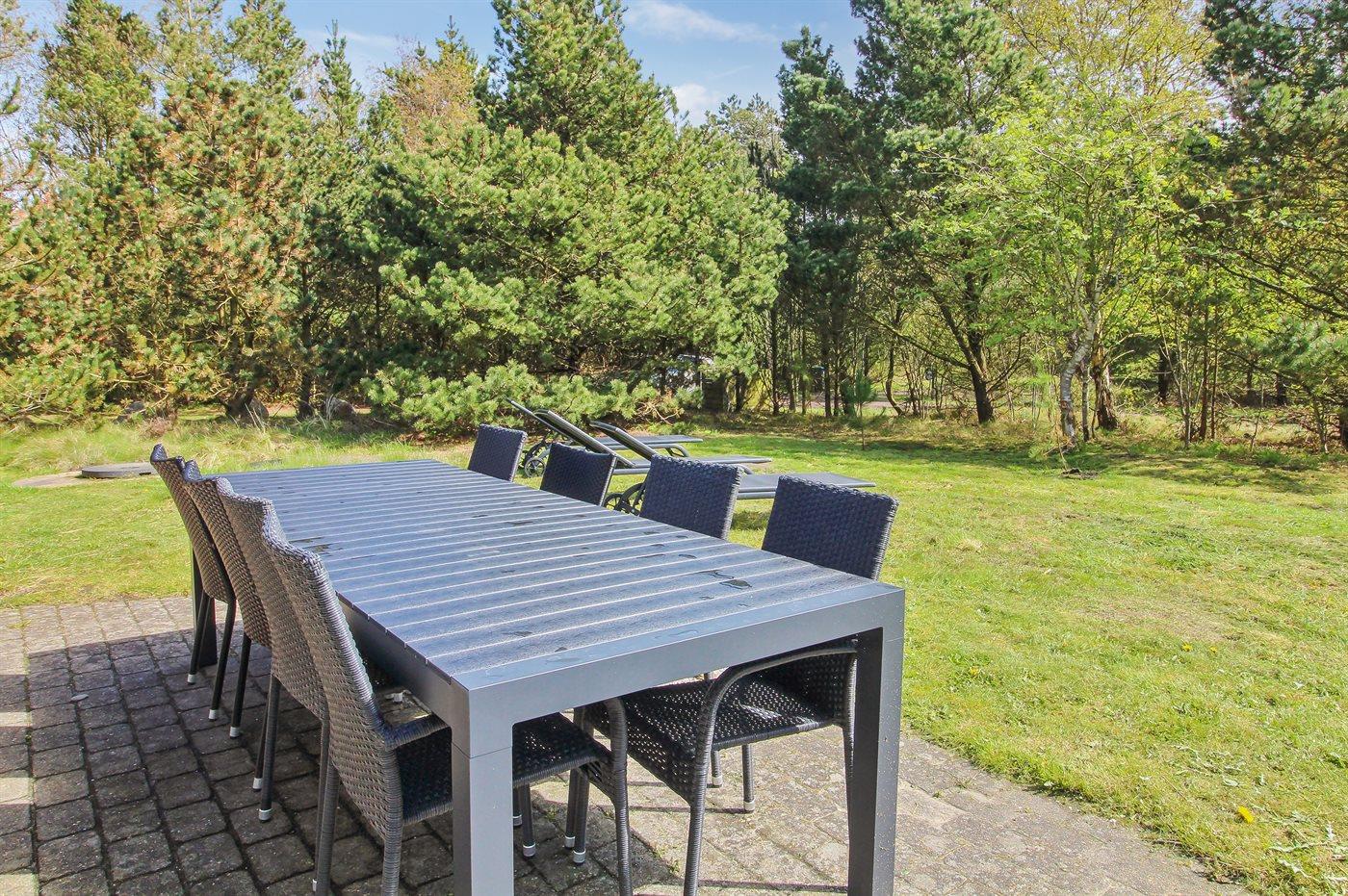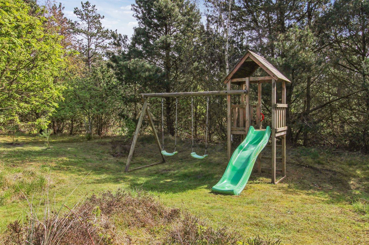 Ferieboligen er beliggende på en 2500 m² stor naturgrund. Der er 1000 m til havet. Der er 1700 m til Vadehavet. Nærmeste forretning er beliggende i en afstand af 2000 m. Der er en golfbane i en afstand af 1000 m. Til ferieboligen hører åbent terrasseareal. Desuden er der overdækket terrasse. Der er redskabsrum. Gynge. Sandkasse. Legetårn. Rutchebane. Grill til rådighed. Parkering ved ferieboligen.