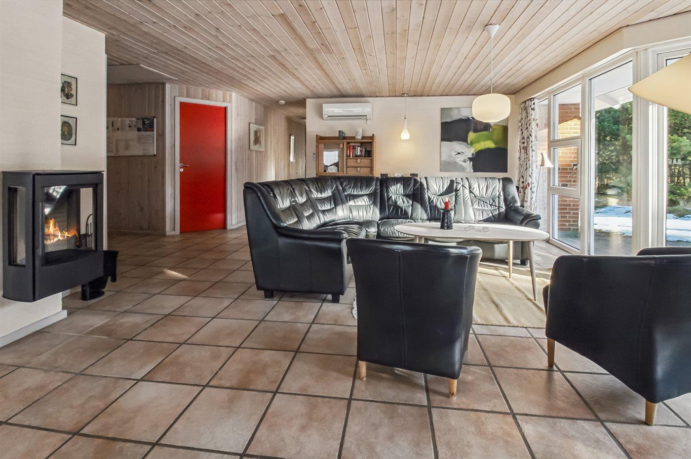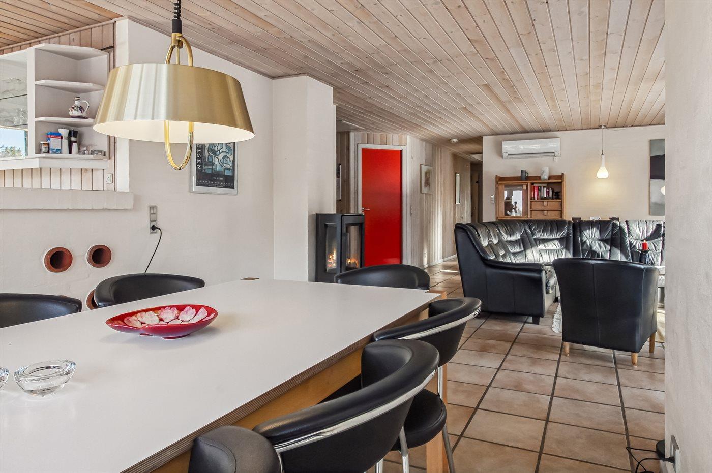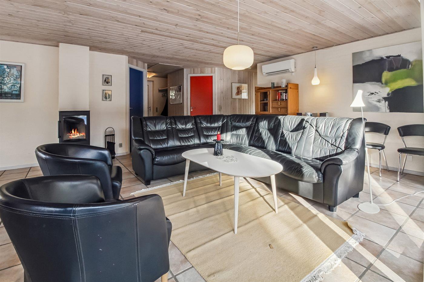 Efter en aktiv dag ved stranden eller en lang gåtur kan man slappe af i husets spabad og i saunaen. Det veludstyrede køkken med kogeø ligger i åben forbindelse med den pæne stue, hvor man kan hygge foran brændeovnen.