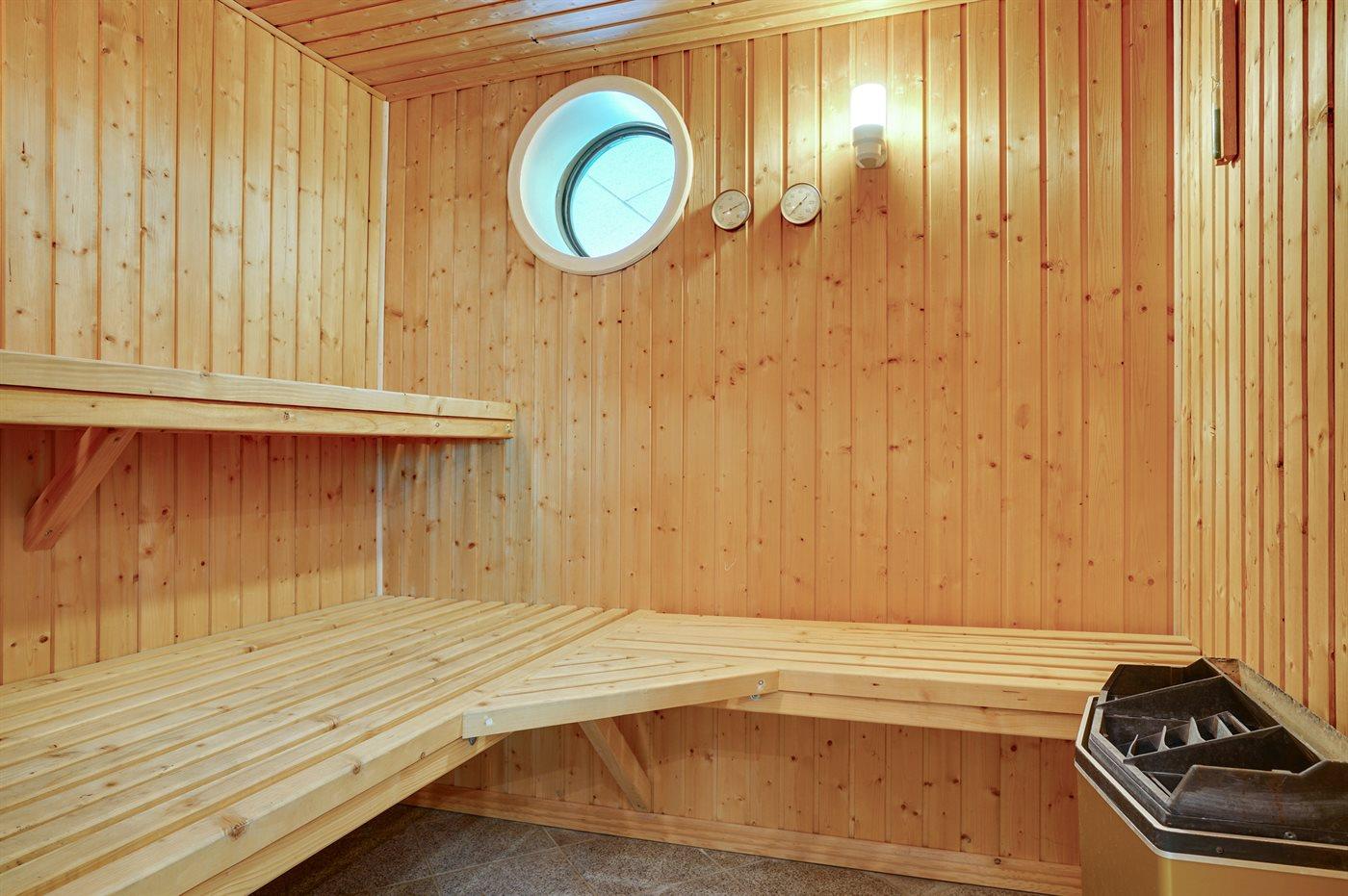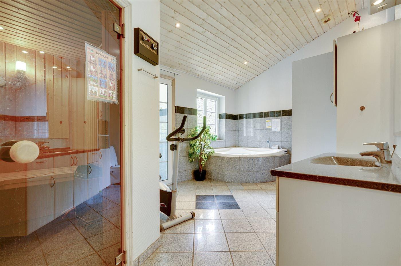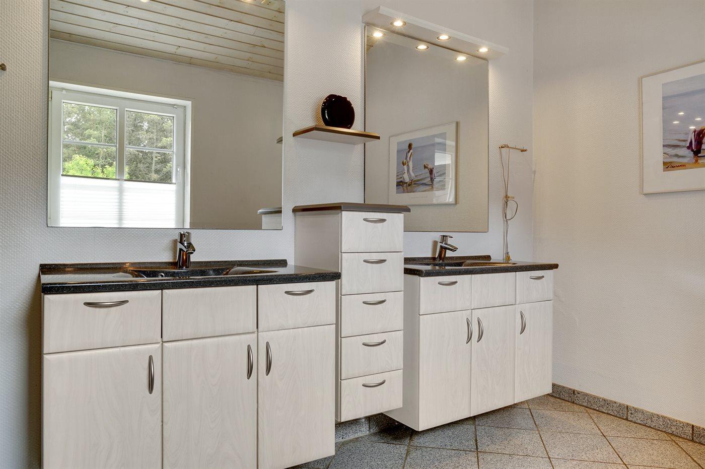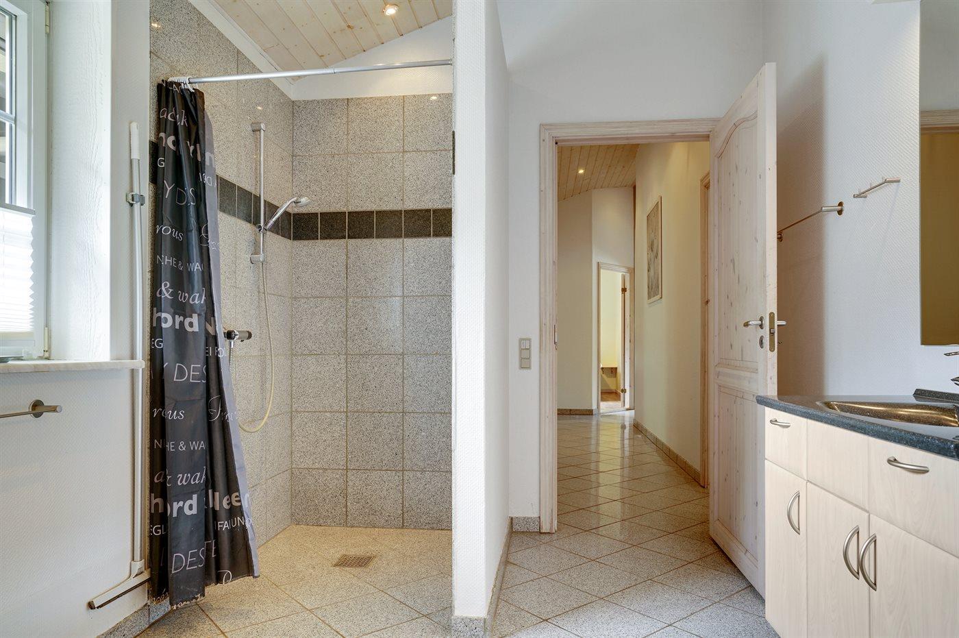 Der er 2 badeværelser med bruseniche og 2 toiletter. Der er gulvvarme på 2 badeværelser. I saunaen er der mulighed for afslapning.