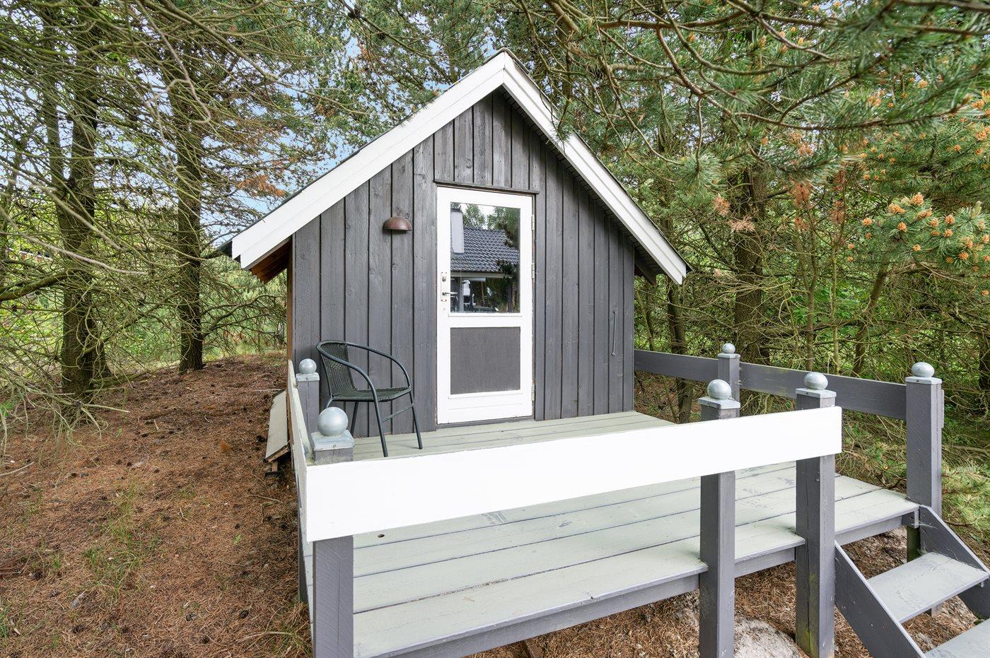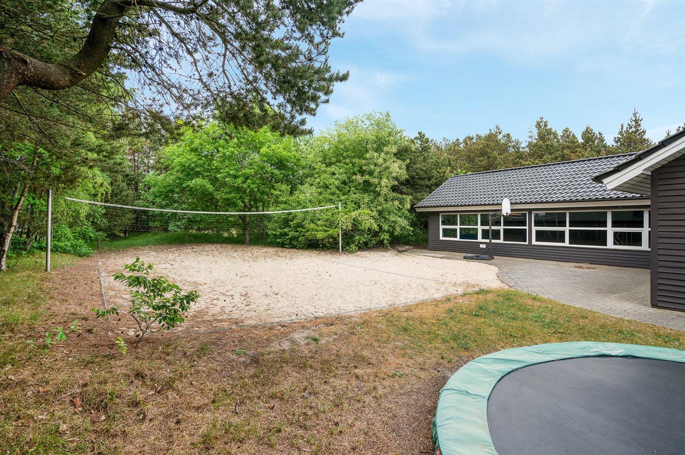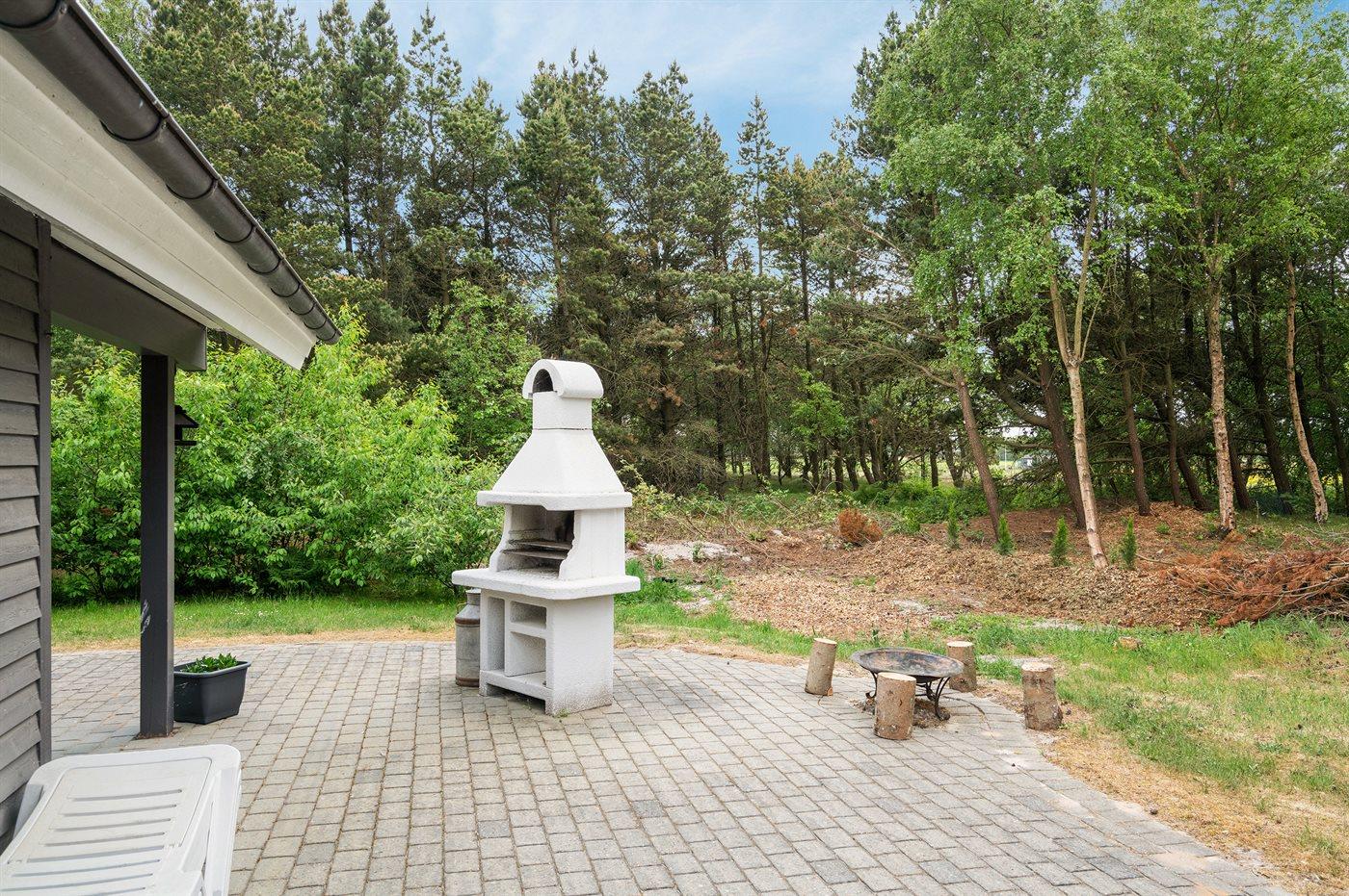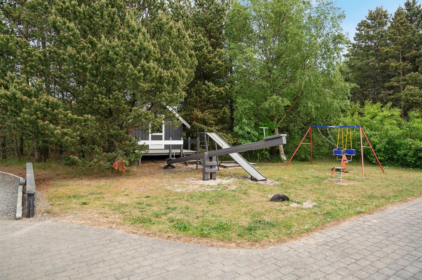 Ferieboligen er beliggende på en 2500 m² stor naturgrund. Der er 800 m til havet. Nærmeste forretning er beliggende i en afstand af 1500 m. Til ferieboligen hører 500 m² terrasseareal. Gynge. Sandkasse. Legehus. Trampolin. Beachvolley. Grill til rådighed. Parkering ved ferieboligen.