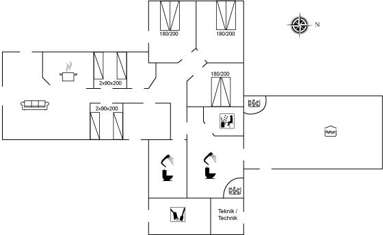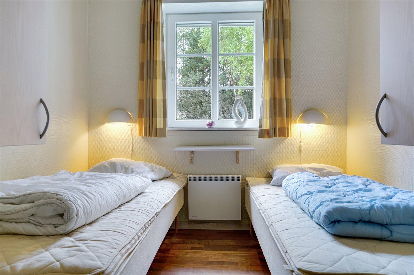 Der er i alt 5 soveværelser. Sovepladserne fordeler sig på: 6 sovepladser i dobbeltsenge. 4 sovepladser i enkeltsenge.