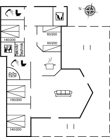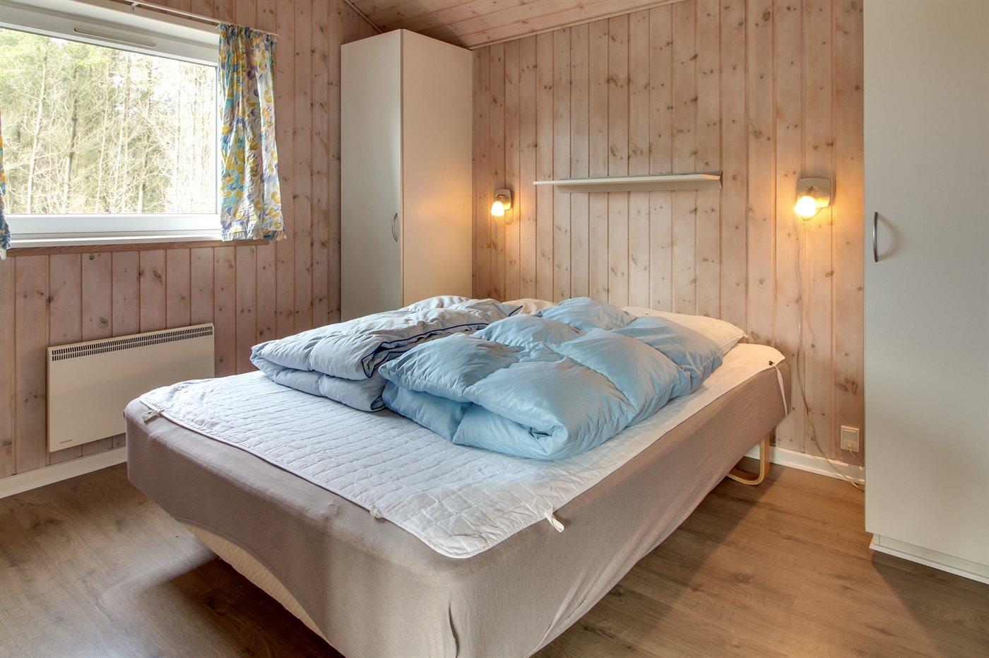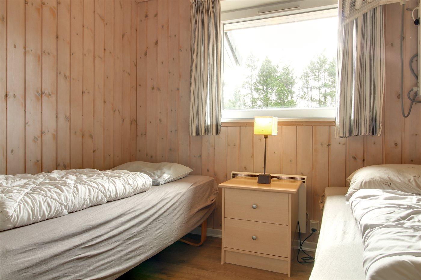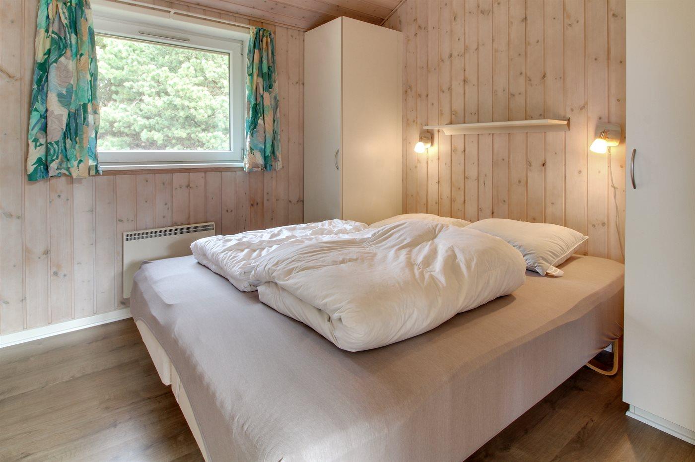 Der er i alt 4 soveværelser. Sovepladserne fordeler sig på: 6 sovepladser i dobbeltsenge. 2 sovepladser i enkeltsenge.