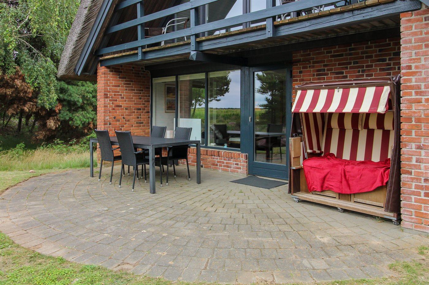 Hyggeligt sommerhus på Rømø med terrasse, balkon og tæt på golfbane, perfekt til en afslappende ferie i naturskønne omgivelser.