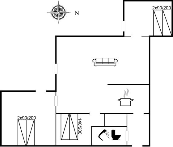 Der er i alt 3 soveværelser. Sovepladserne fordeler sig på: 6 sovepladser i dobbeltsenge. Derudover er der 1 stk. barneseng.