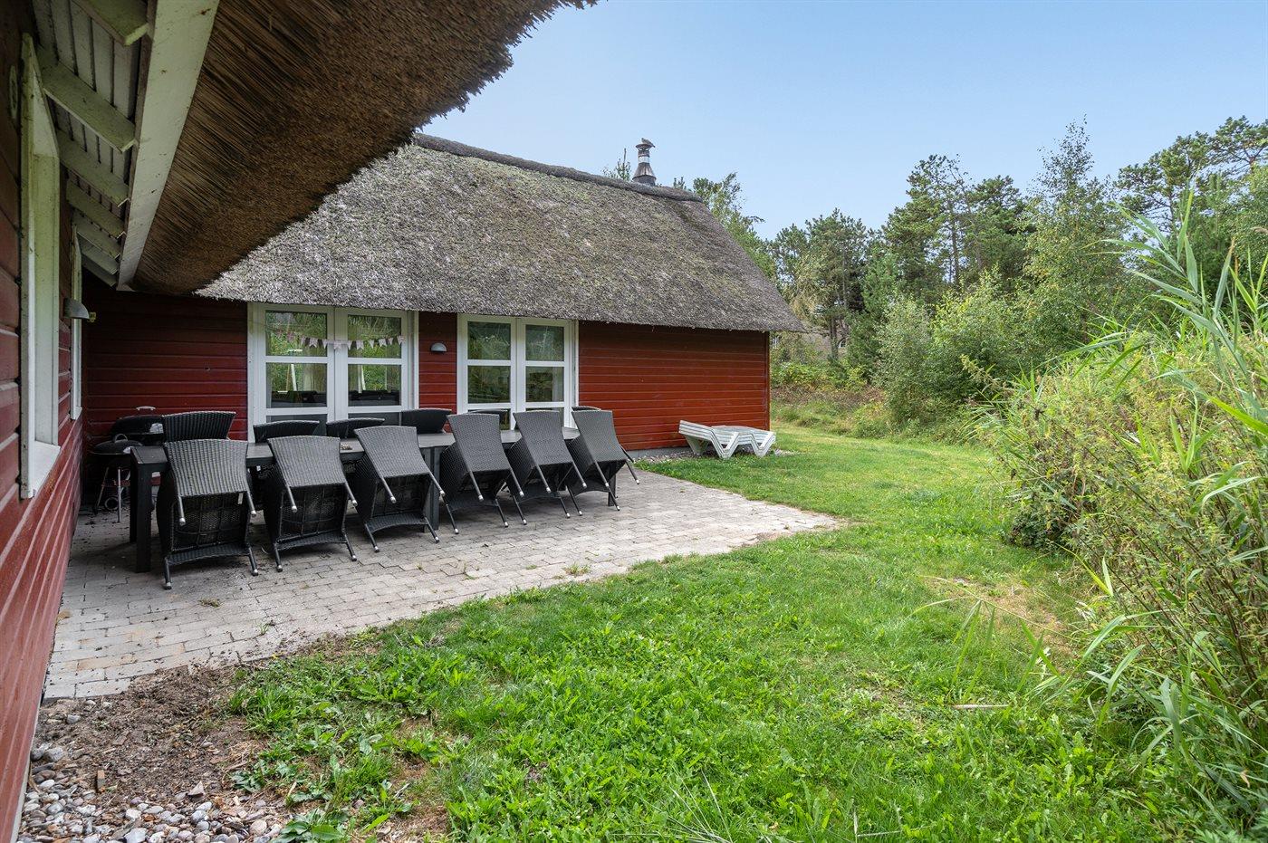 Ferieboligen er beliggende på en 2500 m² stor naturgrund. Der er 1400 m til havet. Der er 2400 m til Vadehavet. Nærmeste forretning er beliggende i en afstand af 1500 m. Der er en golfbane i en afstand af 1300 m. Til ferieboligen hører 90 m² terrasseareal. Gynge. Sandkasse. Beachvolley. Der er installeret stik til opladning af elbil. Parkering ved ferieboligen.