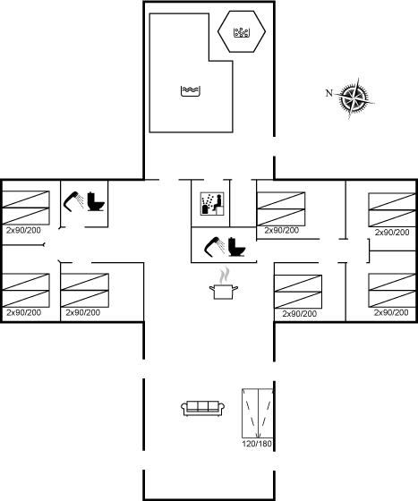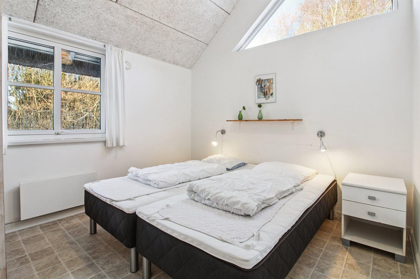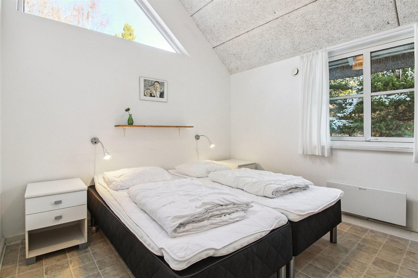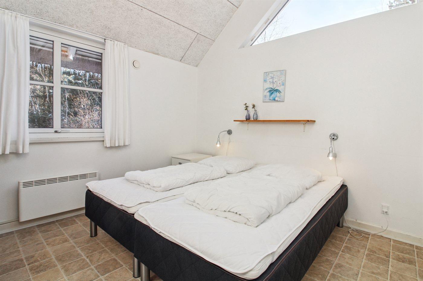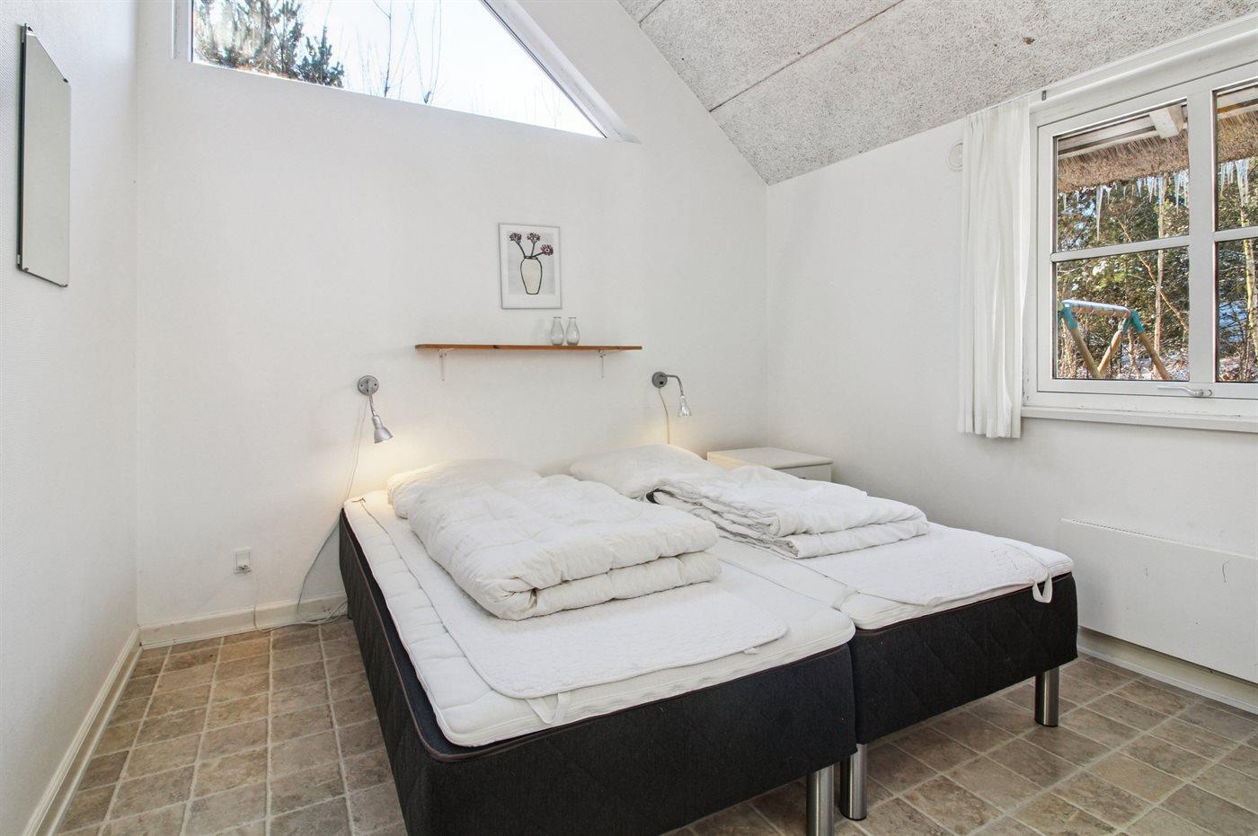 Der er i alt 7 soveværelser. Sovepladserne fordeler sig på: 10 sovepladser i dobbeltsenge. 4 sovepladser i enkeltsenge. 2 sovepladser i sovesofa (dobbelt). 4 sovepladser på madrasser. 2 af disse sovepladser befinder sig i opholdsstuen og 4 af dem befinder sig på hemsen.