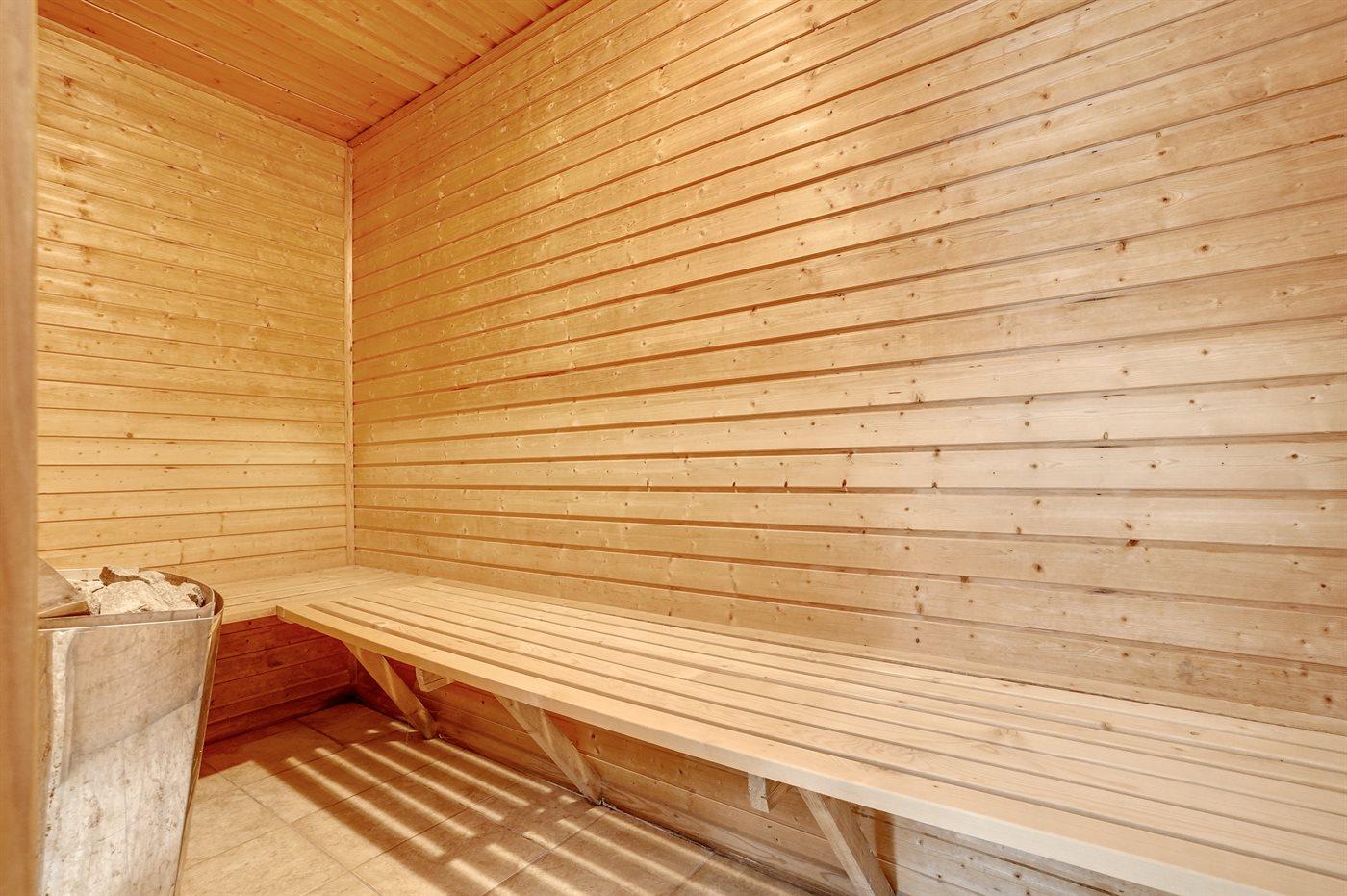 Der er 2 badeværelser med bruseniche og 2 toiletter. Der er gulvvarme på 2 badeværelser. I saunaen er der mulighed for afslapning.