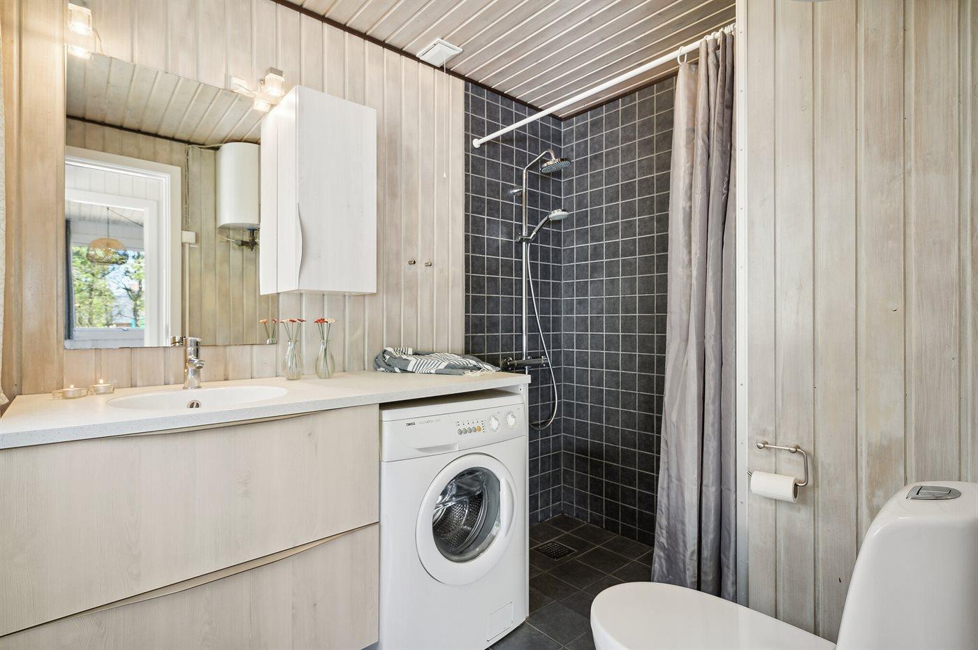 Ferieboligen er udstyret med energibesparende varmepumpe. Badeværelse med gulvvarme, bruser og vaskemaskine. Køkkenet (nyt 2023) ligger i forbindelse med stuen og indeholder bl.a. opvaskemaskine, mikroovn, ovn, køleskab m fryser. Den dejlige, store opholdsstue er indrettet med bl.a. brændeovn, TV med parabolantenne og stereoanlæg med CD afspiller. Der er gratis trådløs internetforbindelse til rådighed (computer skal medbringes). Sovepladserne er fordelt på 3 værelser (renoveret 2023) 1 med dobbeltseng, 1 med 2 enkeltsenge og 1 med 1 enkeltseng.