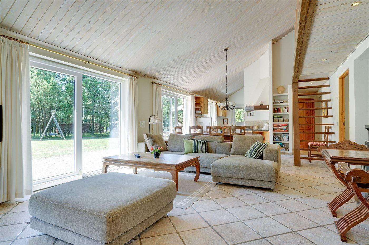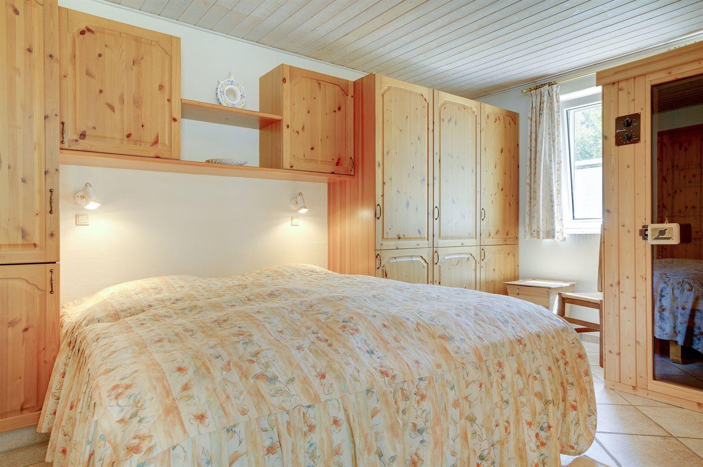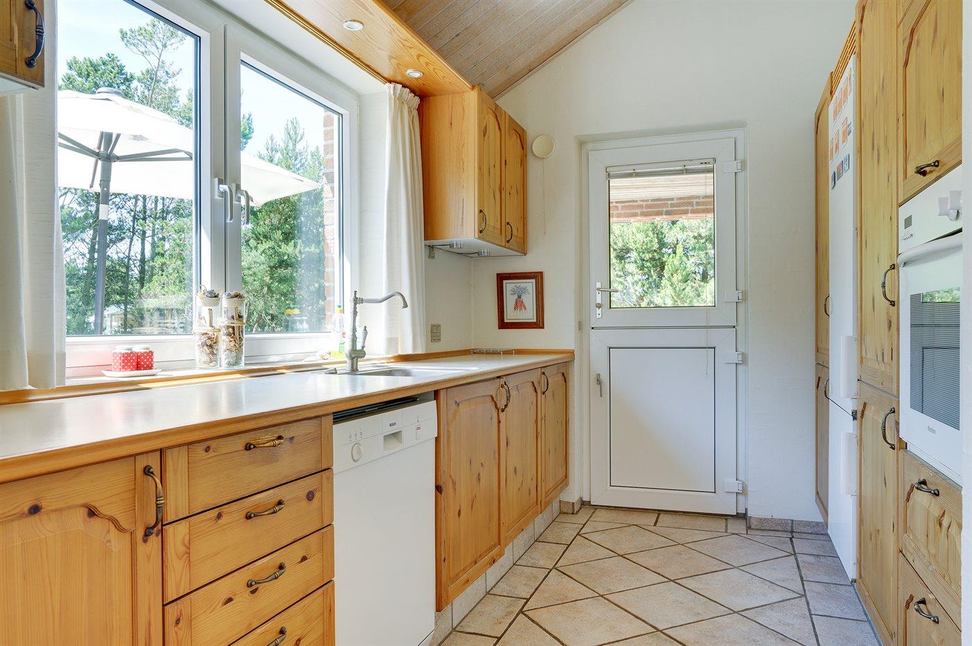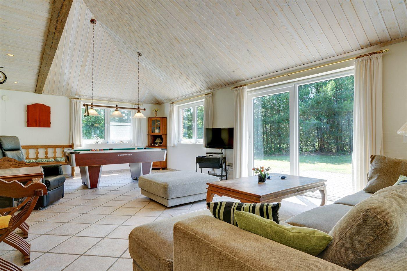 Nær Sønderstrand ligger dette flotte sommerhus i sten, bygget i 1998, beliggende på en stor naturgrund langt fra vejen. Til huset hører såvel åben som overdækket terrasse med havemøbler. Indvendig er vægge og lofter holdt i lyse farver. Flot badeværelse med gulvvarme, bruseniche og skabsarrangement. Det pæne køkken er kombineret med opholdsstuen og bl.a. udstyret med opvaskemaskine, mikrobølgeovn og fryser. Den smagfuldt indrettede og særdeles rummelige opholdstue indeholder brændeovn, stereoanlæg med CD-afspiller, video, TV med parabolantenne (kun tyske programmer) samt billardbord. Husets sovepladser fordeler sig på 3 soveværelser, alle med dobbeltseng. Huset er desuden udstyret med gratis internetforbindelse (computer skal medbringes), solarium, vaskemaskine, tørretumbler, barneseng og høj barnestol. På grunden er der sandkasse, gynge samt lille privat minigolfbane med 4 baner. Huset ligger kun ca. 250 m fra golfbane.
