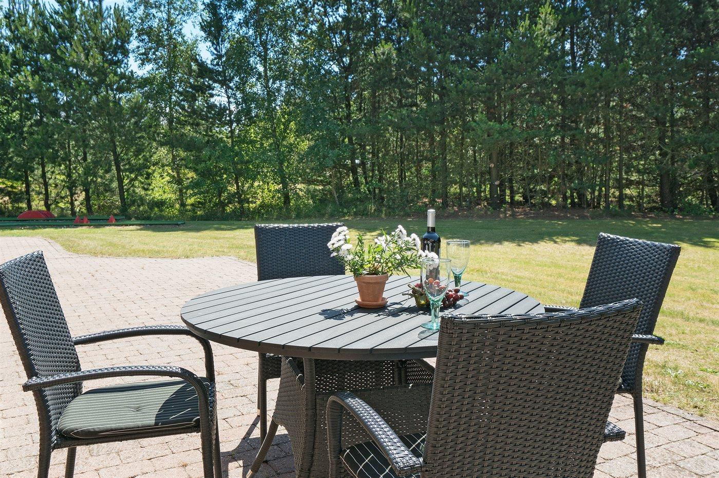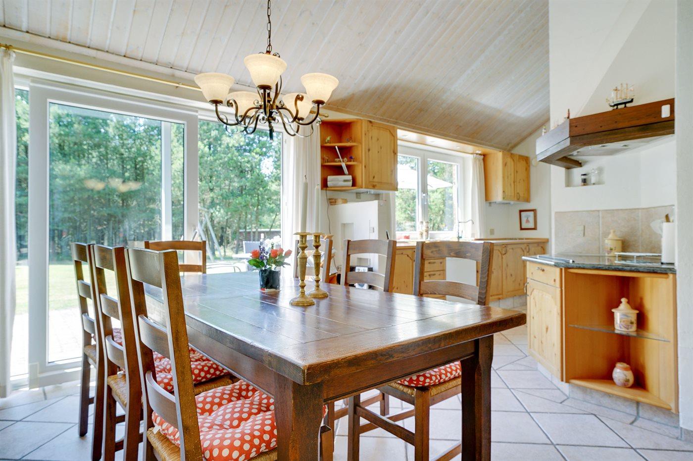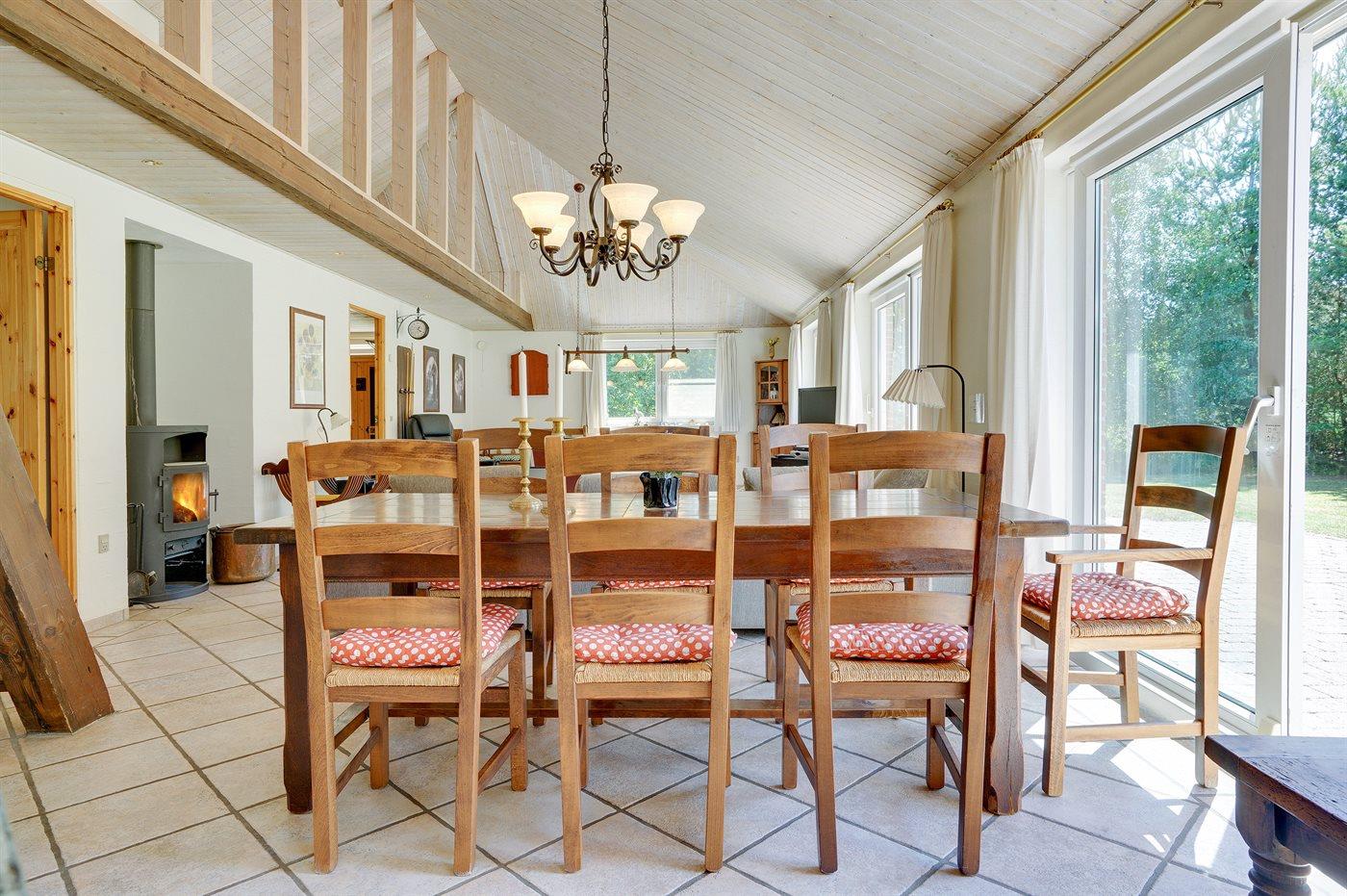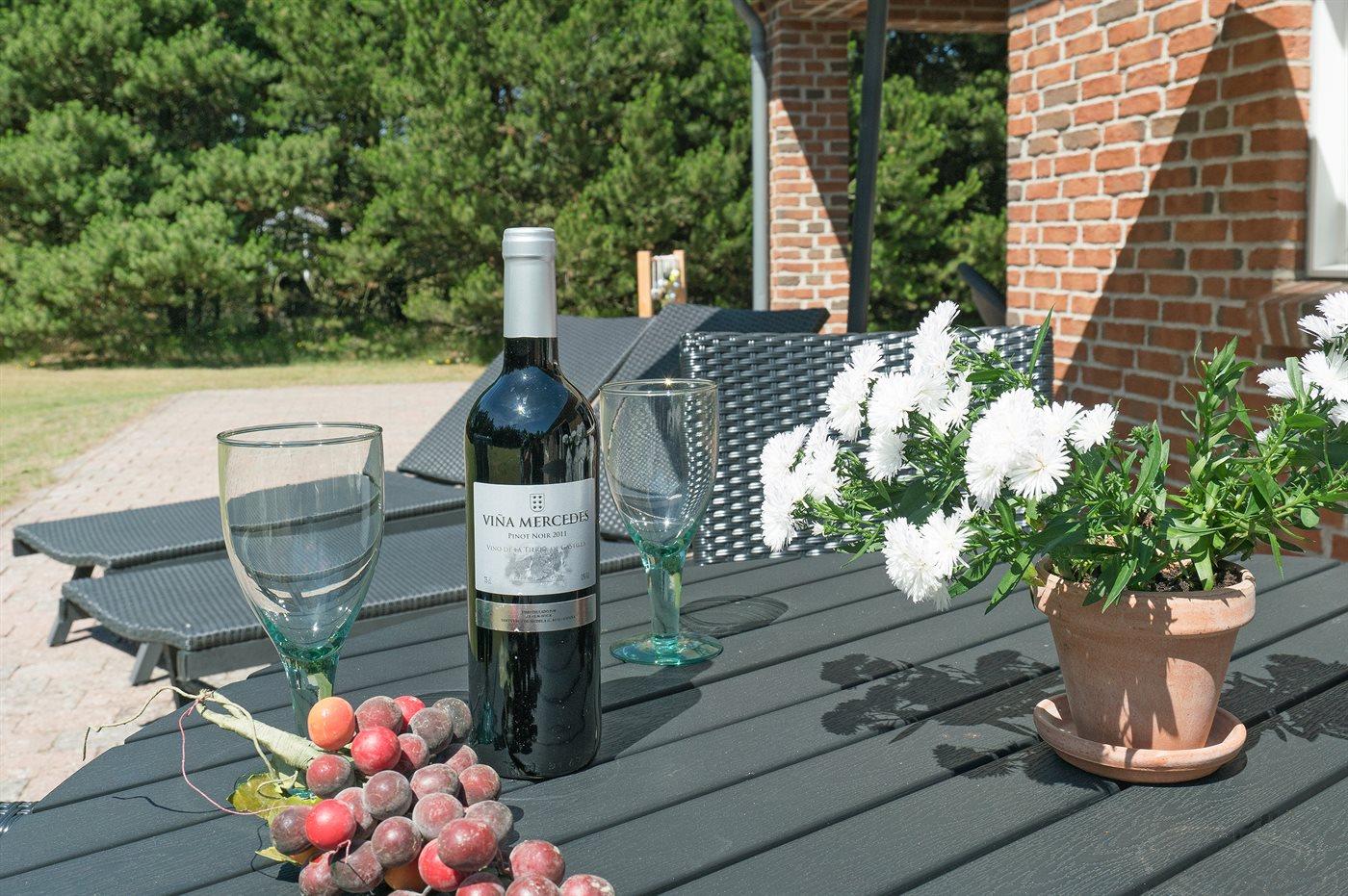 Nær Sønderstrand ligger dette flotte sommerhus i sten, bygget i 1998, beliggende på en stor naturgrund langt fra vejen. Til huset hører såvel åben som overdækket terrasse med havemøbler. Indvendig er vægge og lofter holdt i lyse farver. Flot badeværelse med gulvvarme, bruseniche og skabsarrangement. Det pæne køkken er kombineret med opholdsstuen og bl.a. udstyret med opvaskemaskine, mikrobølgeovn og fryser. Den smagfuldt indrettede og særdeles rummelige opholdstue indeholder brændeovn, stereoanlæg med CD-afspiller, video, TV med parabolantenne (kun tyske programmer) samt billardbord. Husets sovepladser fordeler sig på 3 soveværelser, alle med dobbeltseng. Huset er desuden udstyret med gratis internetforbindelse (computer skal medbringes), solarium, vaskemaskine, tørretumbler, barneseng og høj barnestol. På grunden er der sandkasse, gynge samt lille privat minigolfbane med 4 baner. Huset ligger kun ca. 250 m fra golfbane.