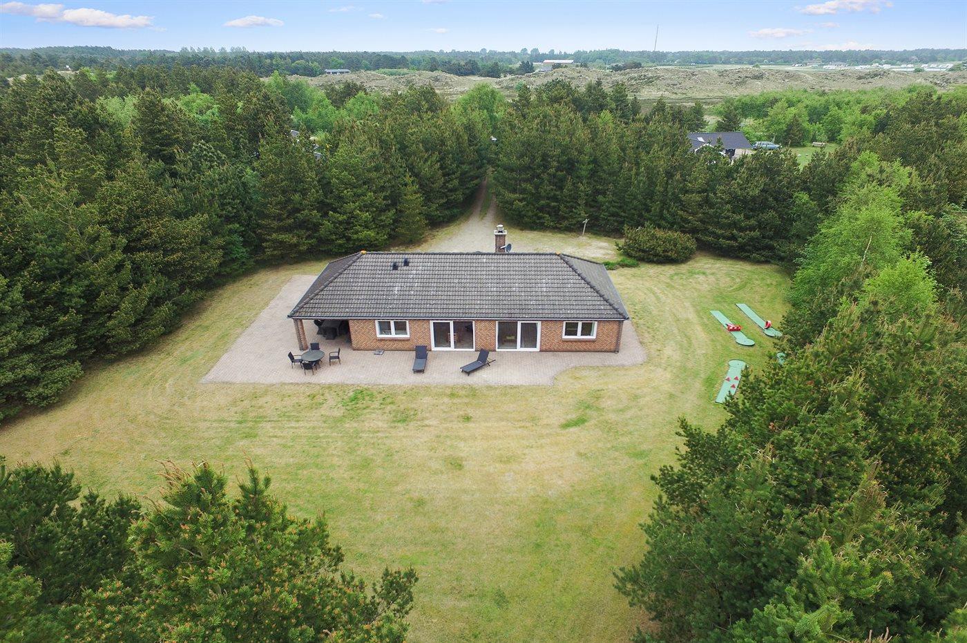 Flot sommerhus på Rømø med naturgrund, terrasse og minigolfbane nær Sønderstrand.