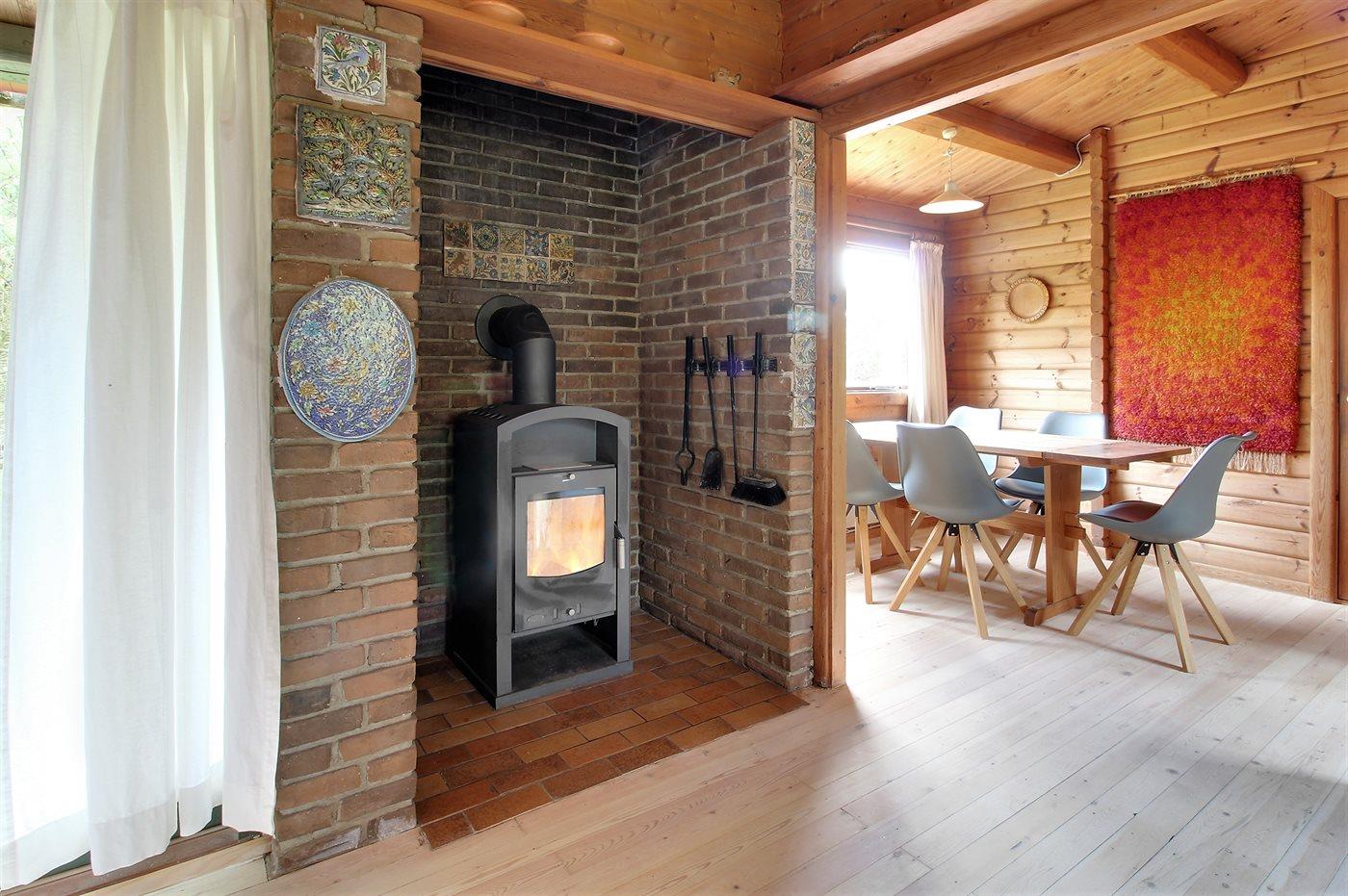 Charmerende bjælkesommerhus på stor naturgrund nær Vadehavet og strand, med brændeovn og vaskemaskine.