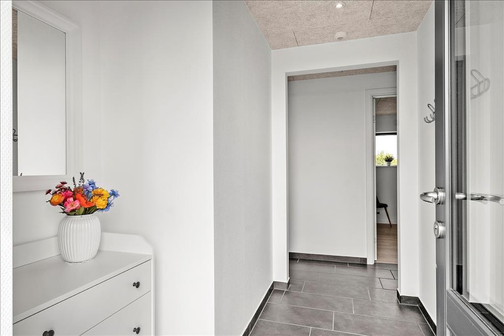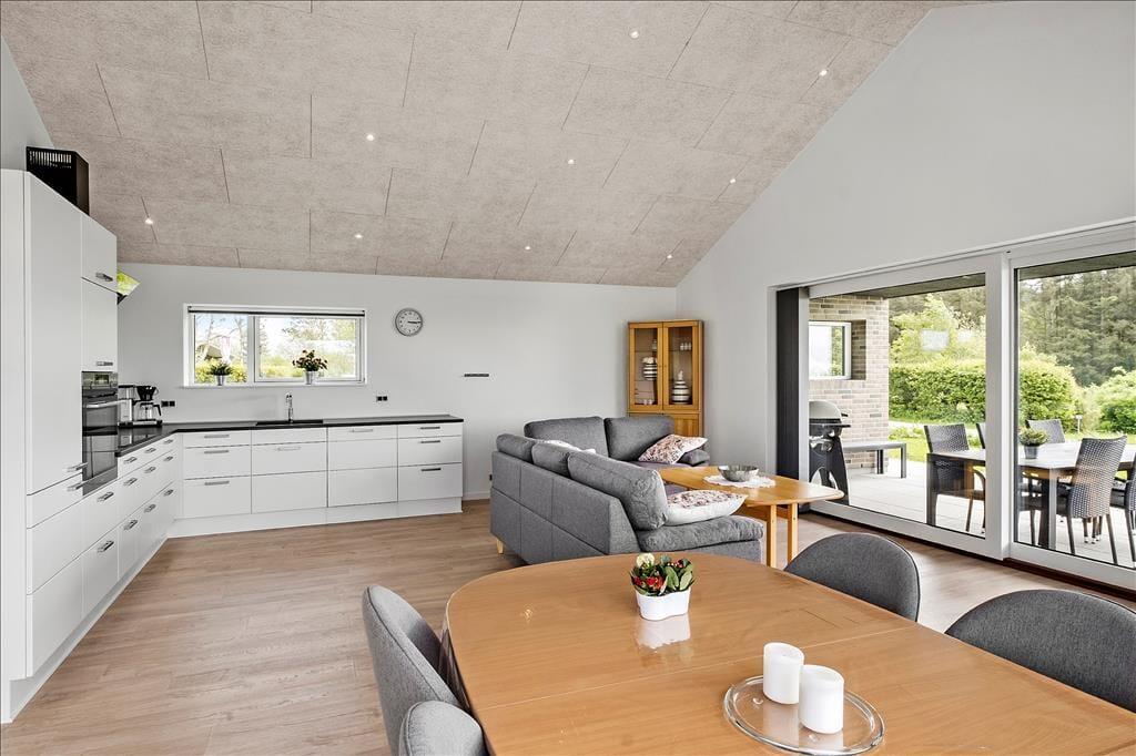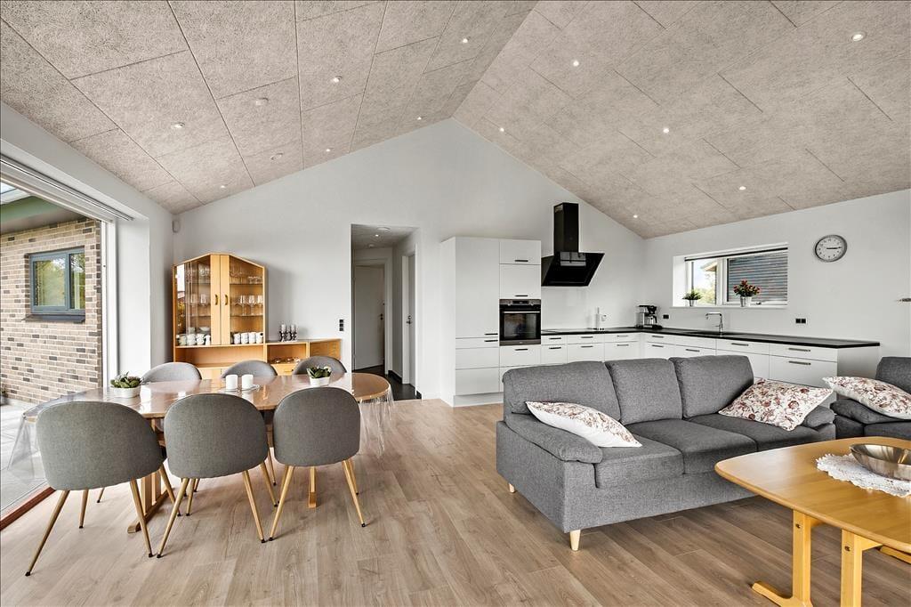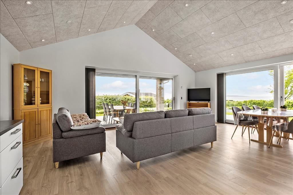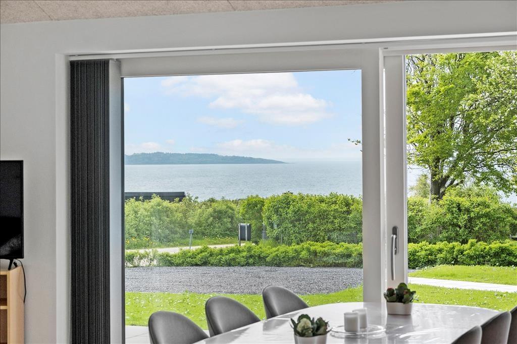 Sådan en fænomenal beliggenhed er vigtig at udnytte, og da sommerhuset blev opført i 2021, blev det derfor udstyret med store panoramavinduer i stuen, så glade feriegæster virkelig kan suge de smukke omgivelser til sig. Det gør driverlivet endnu skønnere, når du kan kigge ud på fjorden, mens du sidder med familien ved spisebordet eller nyder det flotte lysindfald fra din komfortable plads i sofaafdelingen. Et veludstyret køkken ligger i åben forbindelse med stuen, mens sommerhusets andet afsnit byder på fire komfortable soveværelser og to lækre badeværelser – hvilket er perfekt til to børnefamilier eller til en ferie, hvor også bedsteforældre og tanter er inviteret med. Alt i alt er atmosfæren let og indbydende inden døre, og selv de usynlige detaljer som gulvvarmen, der er overalt i huset, er med til at gøre dit ophold her utroligt behageligt.