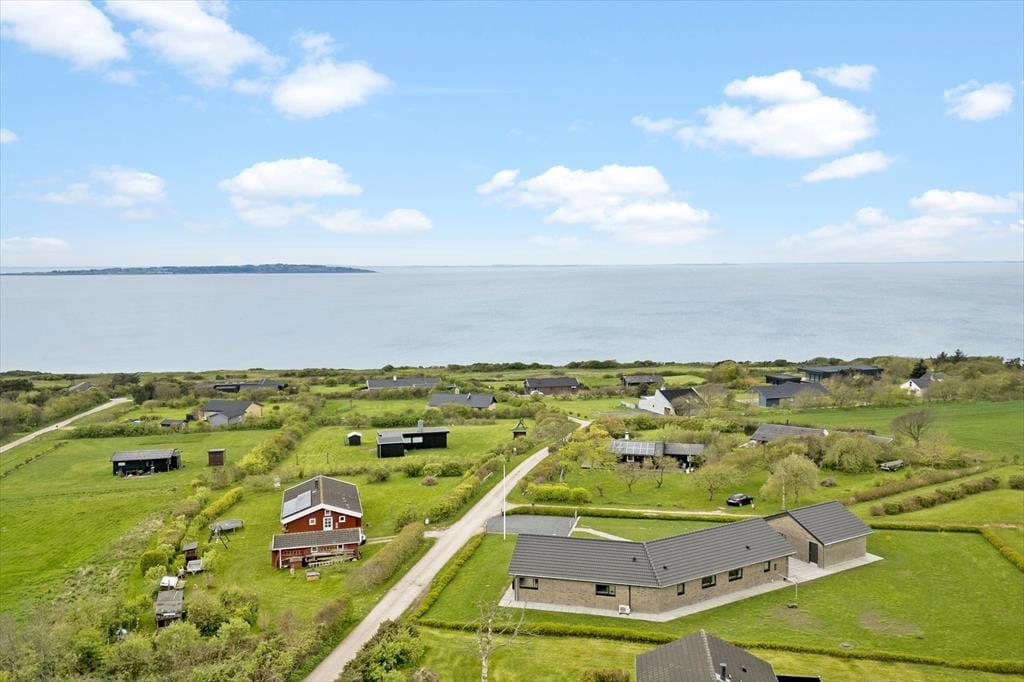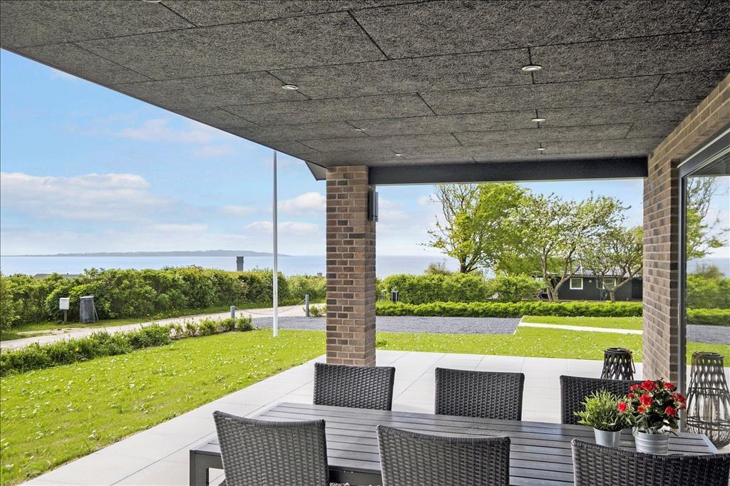 Når solen står højt på den blå himmel, og temperaturerne er lune og sommerlige, er sommerhusets terrassemiljø sikkert det sted, du kommer til at tilbringe størstedelen af tiden. Der er flere gode opholdspladser at vælge imellem, men det store overdækkede areal mod syd er et oplagt valg: Her har du nem adgang til stuen og køkkenet, hvis du får brug for at hente mere iskaffe om eftermiddagen eller en sweater til de køligere aftener – og den smukke udsigt over fjorden er bestemt også med til at gøre det til et særligt skønt sted at slappe af og nyde ferielivet. Grunden er for øvrigt stor, så der er masser af plads til at lege og spille bold på græsplænen, og bilen kan holde trygt i den grusbelagte indkørsel.