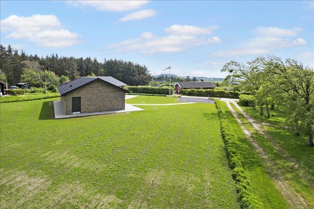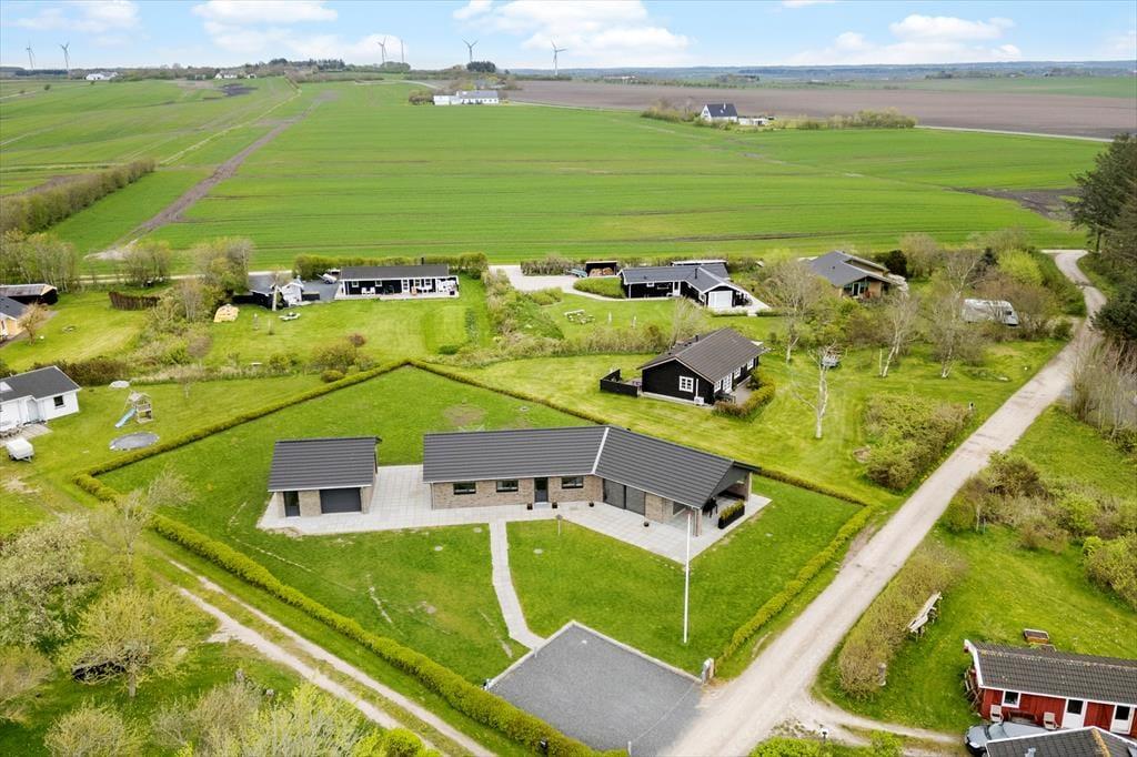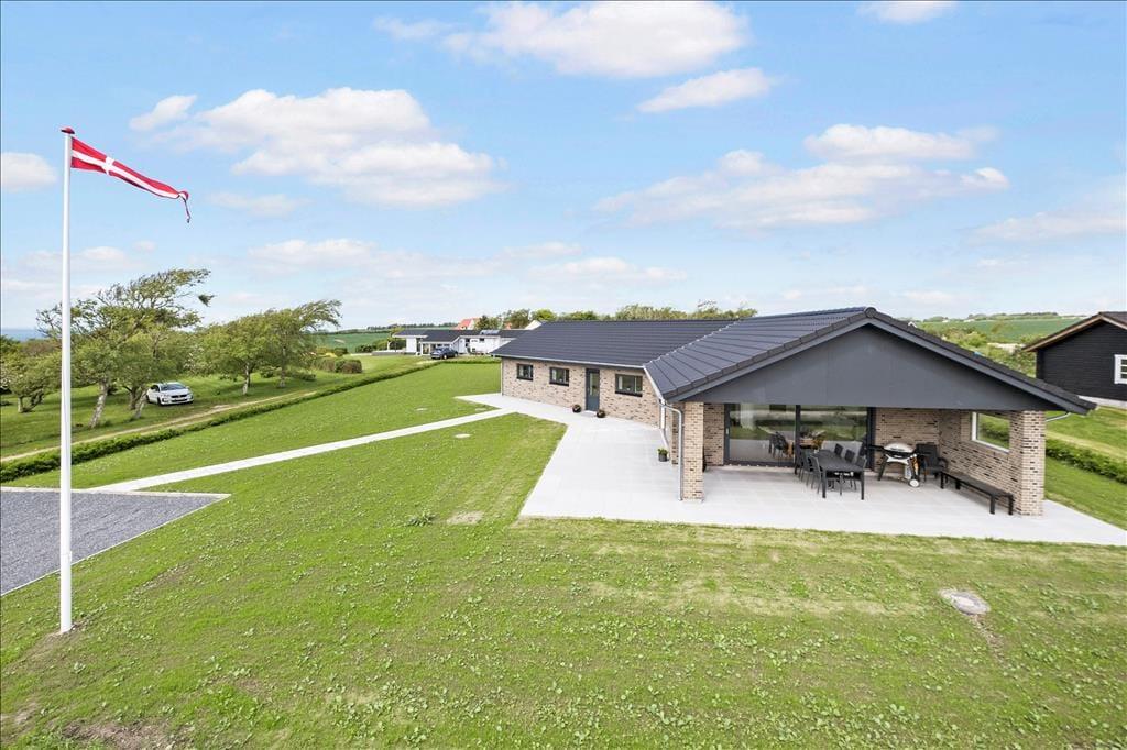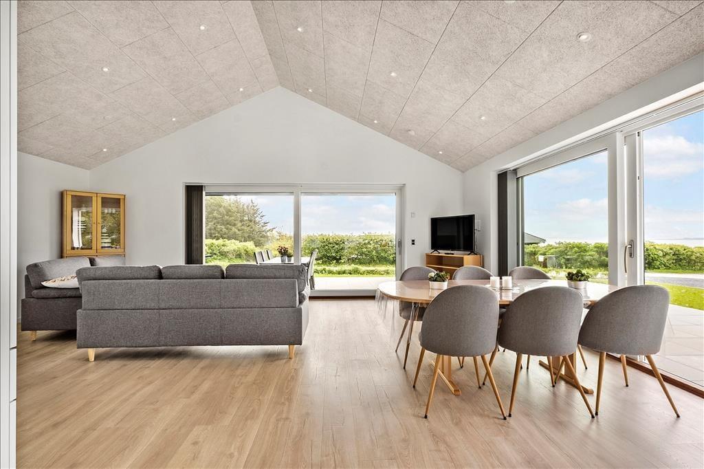 Hvis du drømmer om at holde ferie I et rigtigt livsnyderhus tæt på vandet, er det klogt at læse videre om Skov Sørens Vej 107 ved Rønbjerg. Dette store og velindrettede nybyggeri ligger nemlig bare 200 meter fra stranden, og fra både stuen og terrassen har du den smukkeste panoramaudsigt over Limfjorden og det grønne kystlandskab.