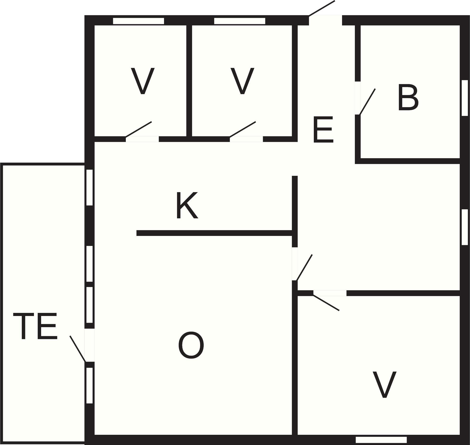 Køkken: El-komfur, køleskab m/frostboks, mikroovn, emhætte, kaffemaskine, opvaskemask.