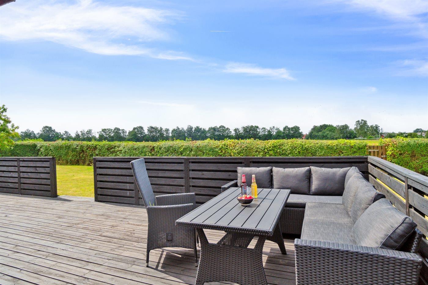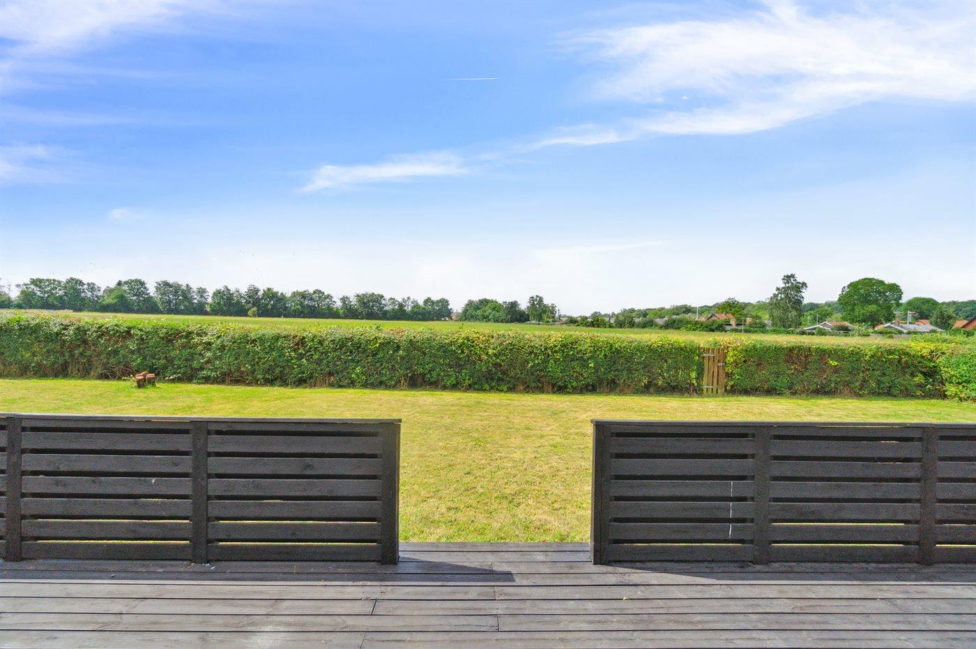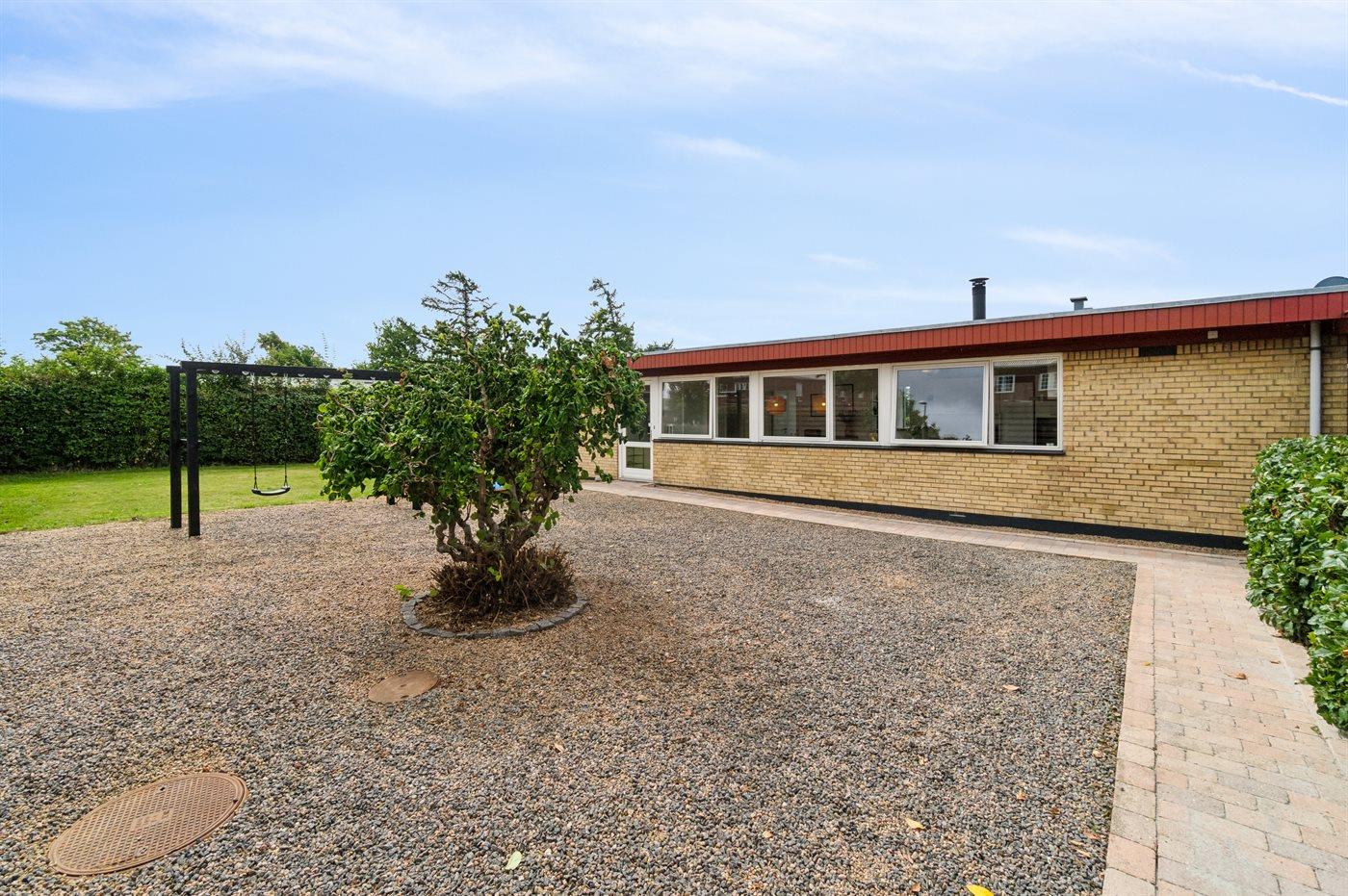 Huset er beliggende på større lukket grund, så man trygt kan lade børnene lege og nyde de muligheder, der er i haven.