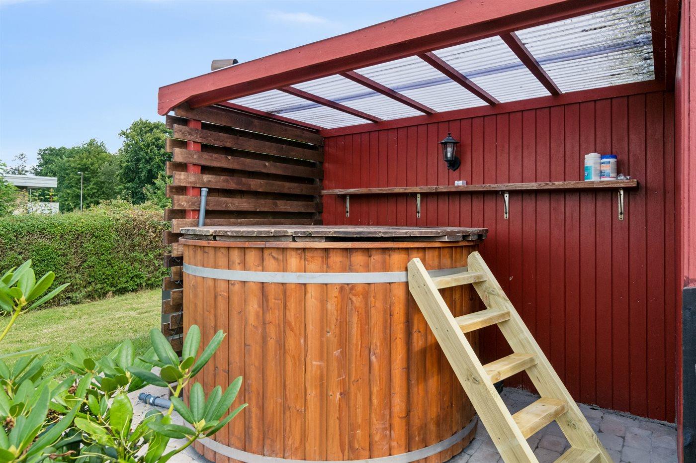 Der er mulighed for afslapning i det udendørs vildmarkskar til 6 personer.