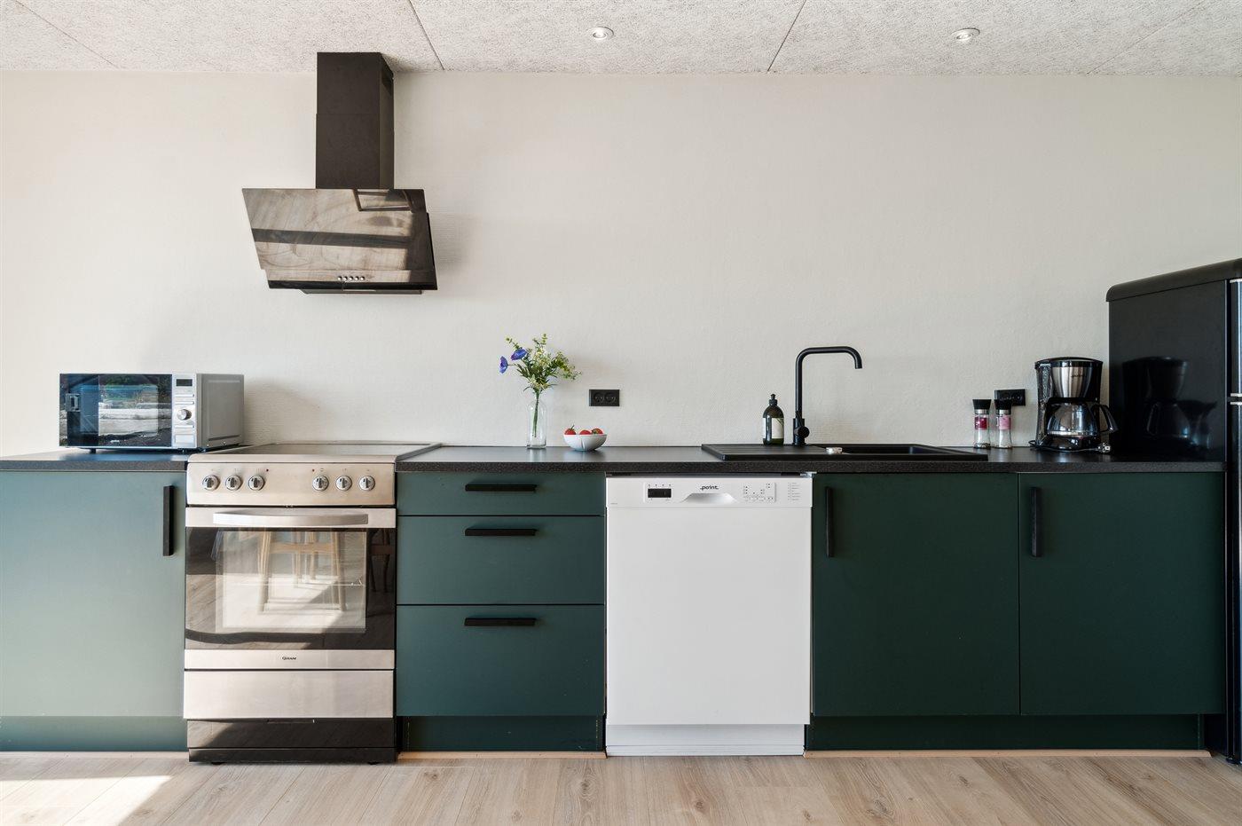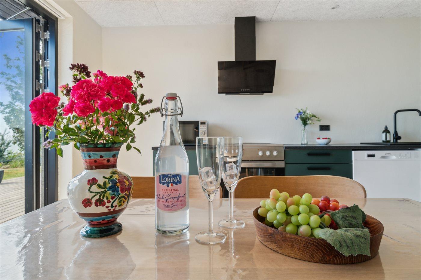 Køkkenet er udstyret med 1 køleskab. Der er 4 keramiske kogeplader, varmluftovn, mikrobølgeovn samt opvaskemaskine.