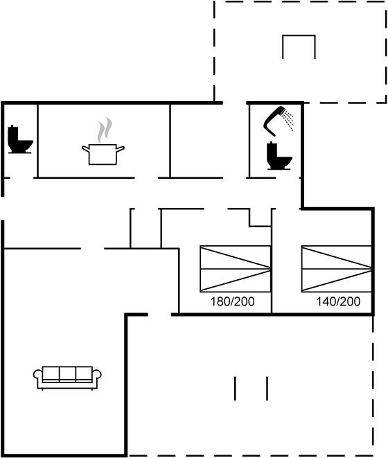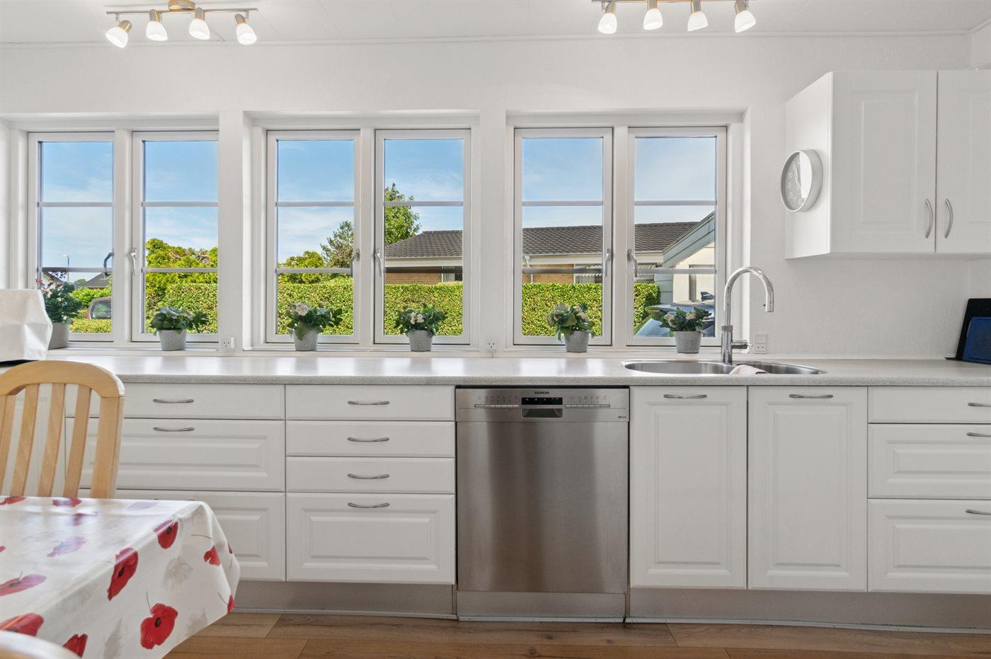 Køkkenet er udstyret med 1 køleskab. Der er 4 induktionskogeplader, varmluftovn, mikrobølgeovn samt opvaskemaskine.