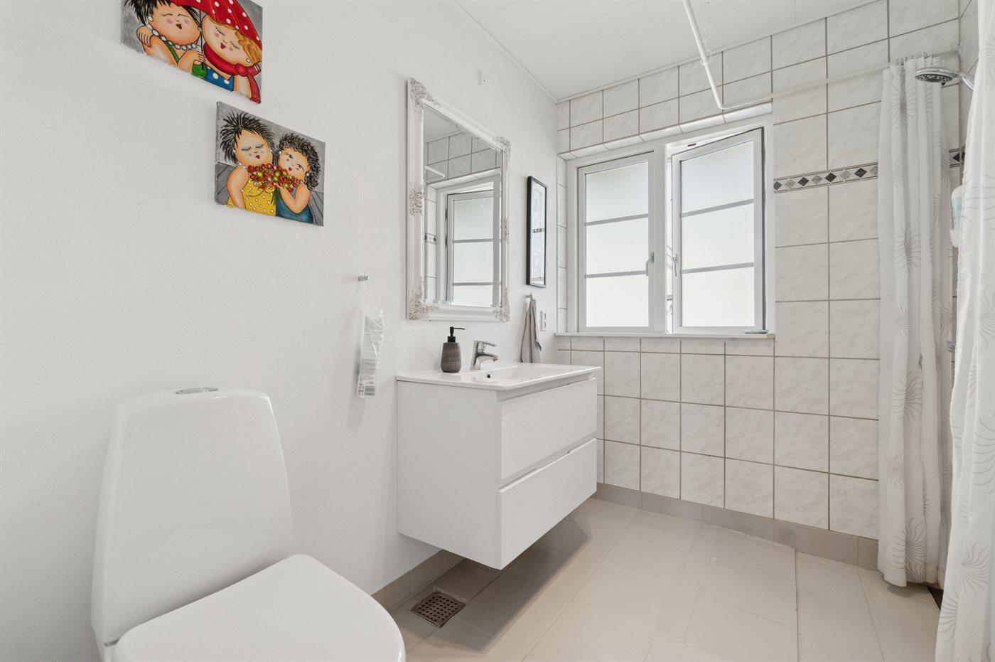 Der er 1 badeværelse med bruser og 2 toiletter, heraf 1 gæstetoilet.
