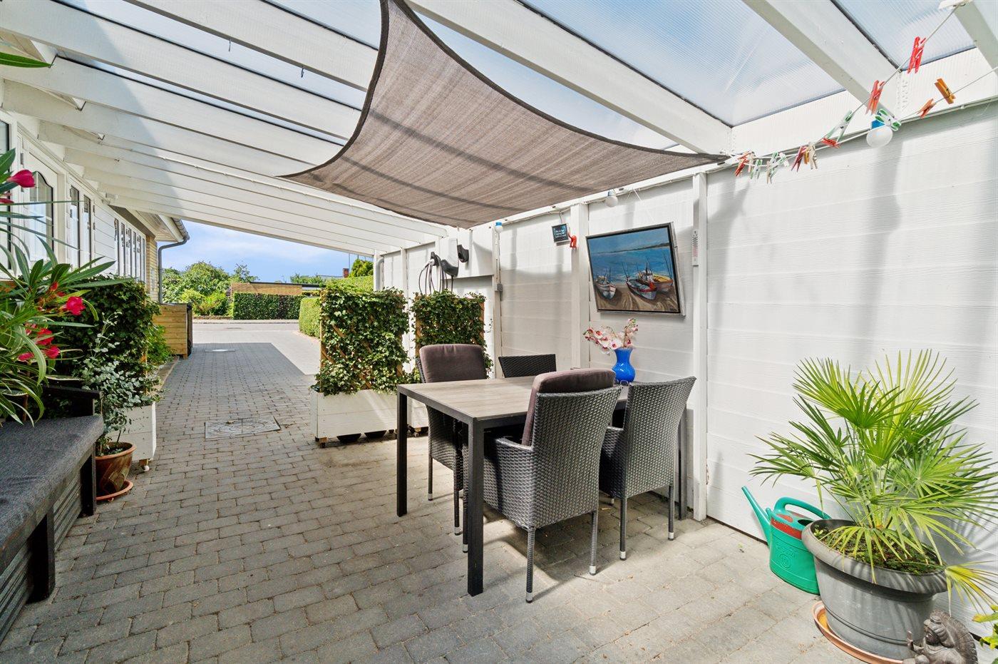 Den store velplejede grund indbyder til afslapning og på træterrassen eller den overdækkede terrasse kan man nyde frokosten eller en god kop kaffe i det fri. Den store stue er præget af det lyse interiør og den behagelige møblering. Køkkenet byder på alle de nødvendige faciliteter, man har brug for når feriemåltiderne skal tilberedes og fremstår velfungerende. Der findes et moderne badeværelse samt et gæstetoilet.