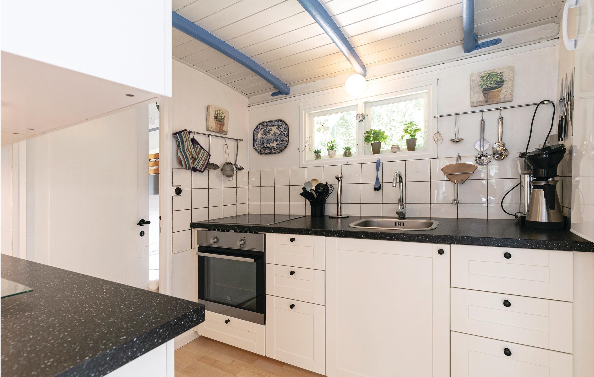 Hyggeligt feriehus med et godt køkken og en skøn udestue.