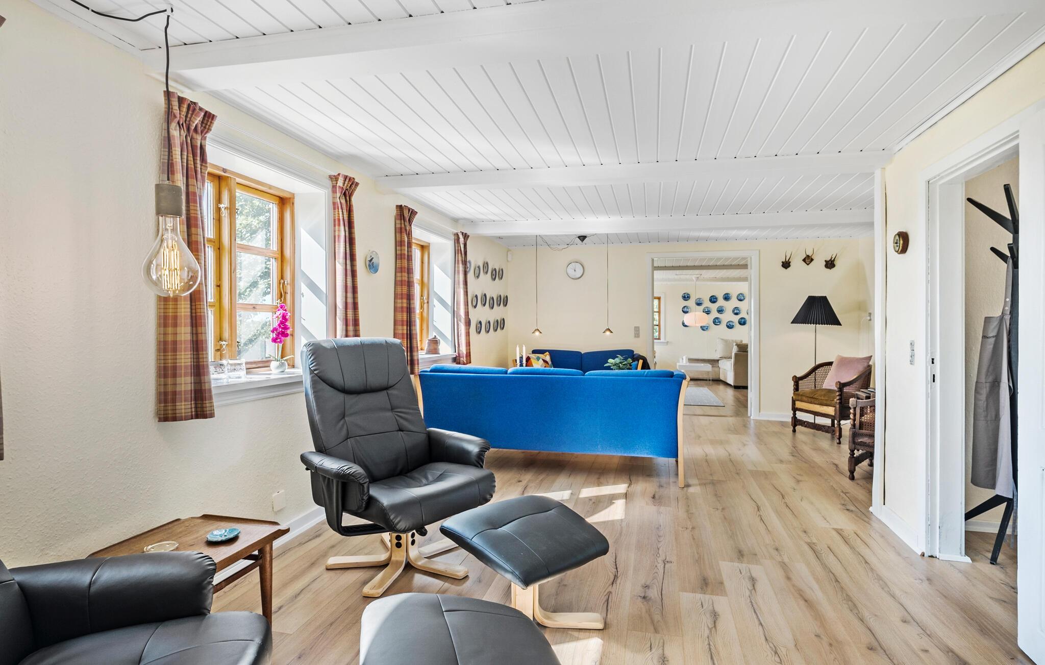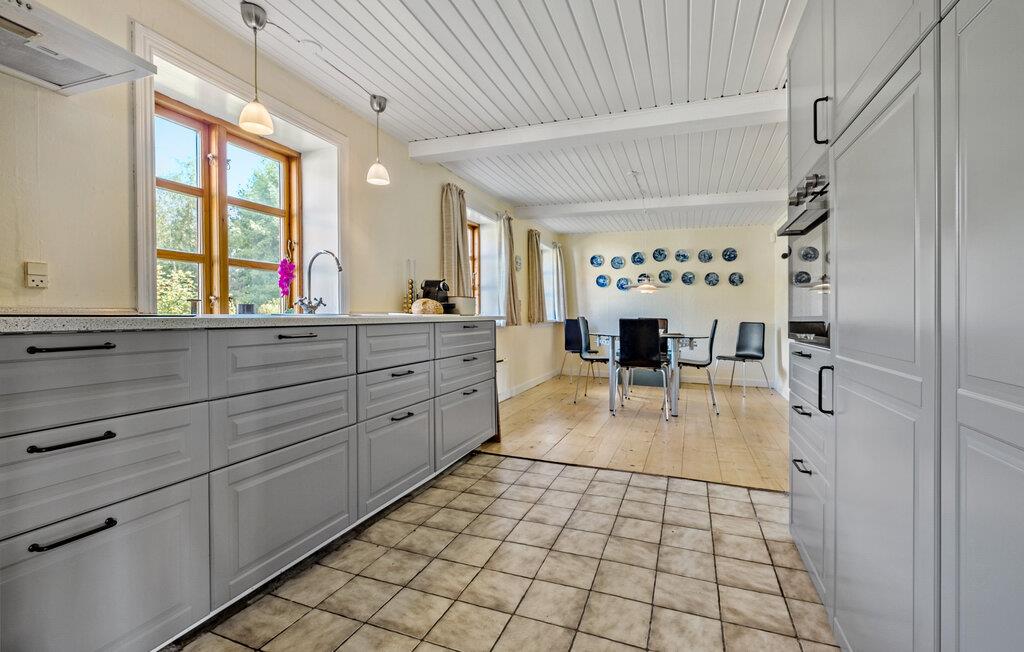 Husets rummelige opholdsstue lægger op til at tilbringe afslappende aftener med sine komfortable sofaer og venlige møbler. Find jer godt til rette foran pejsen og afslut dagen med et glas vin. Det moderne og veludstyrede køkken byder på alt, hvad I skal bruge for at lave mad sammen som en familie og spise måltider i spisepladsen.