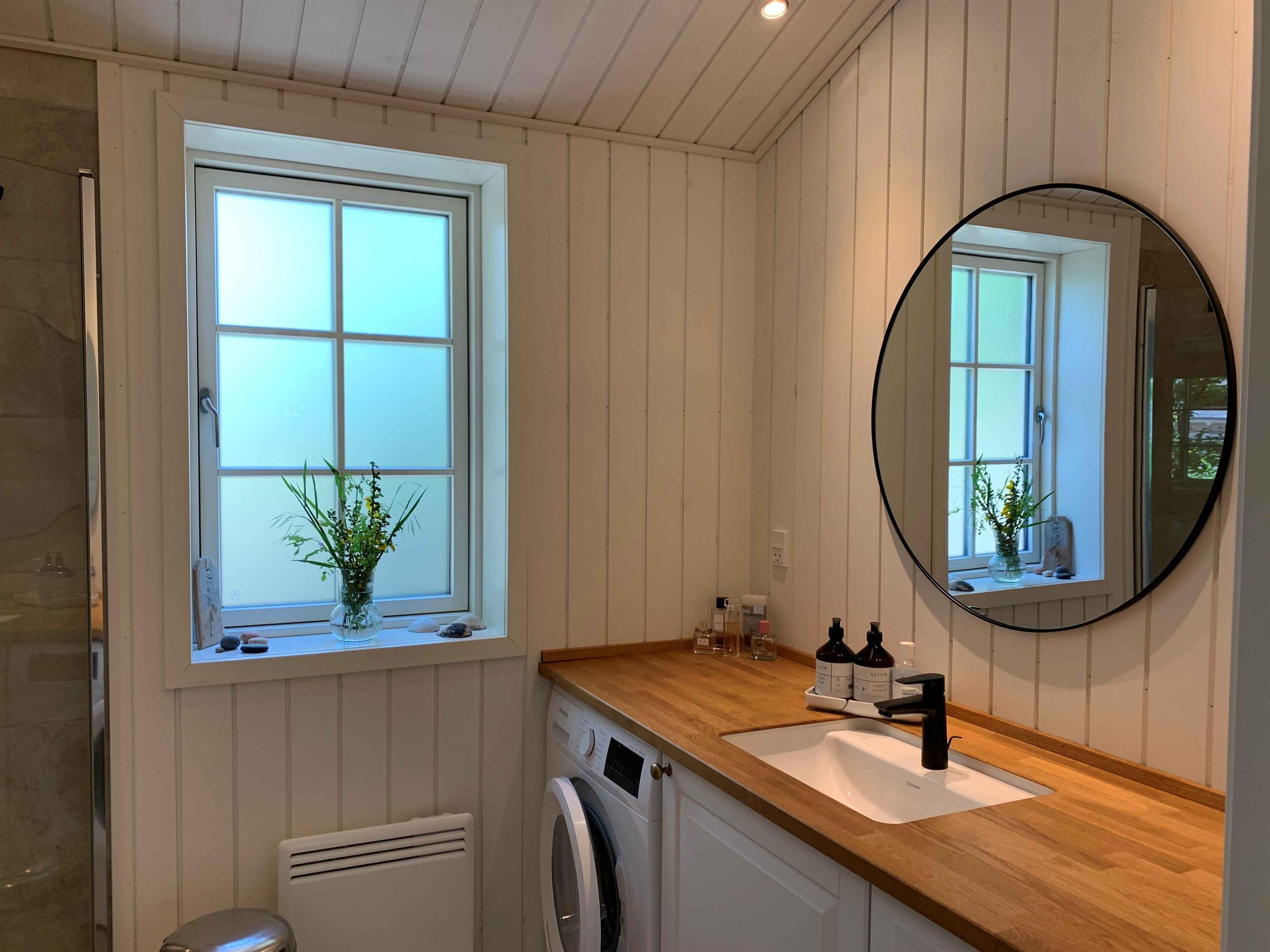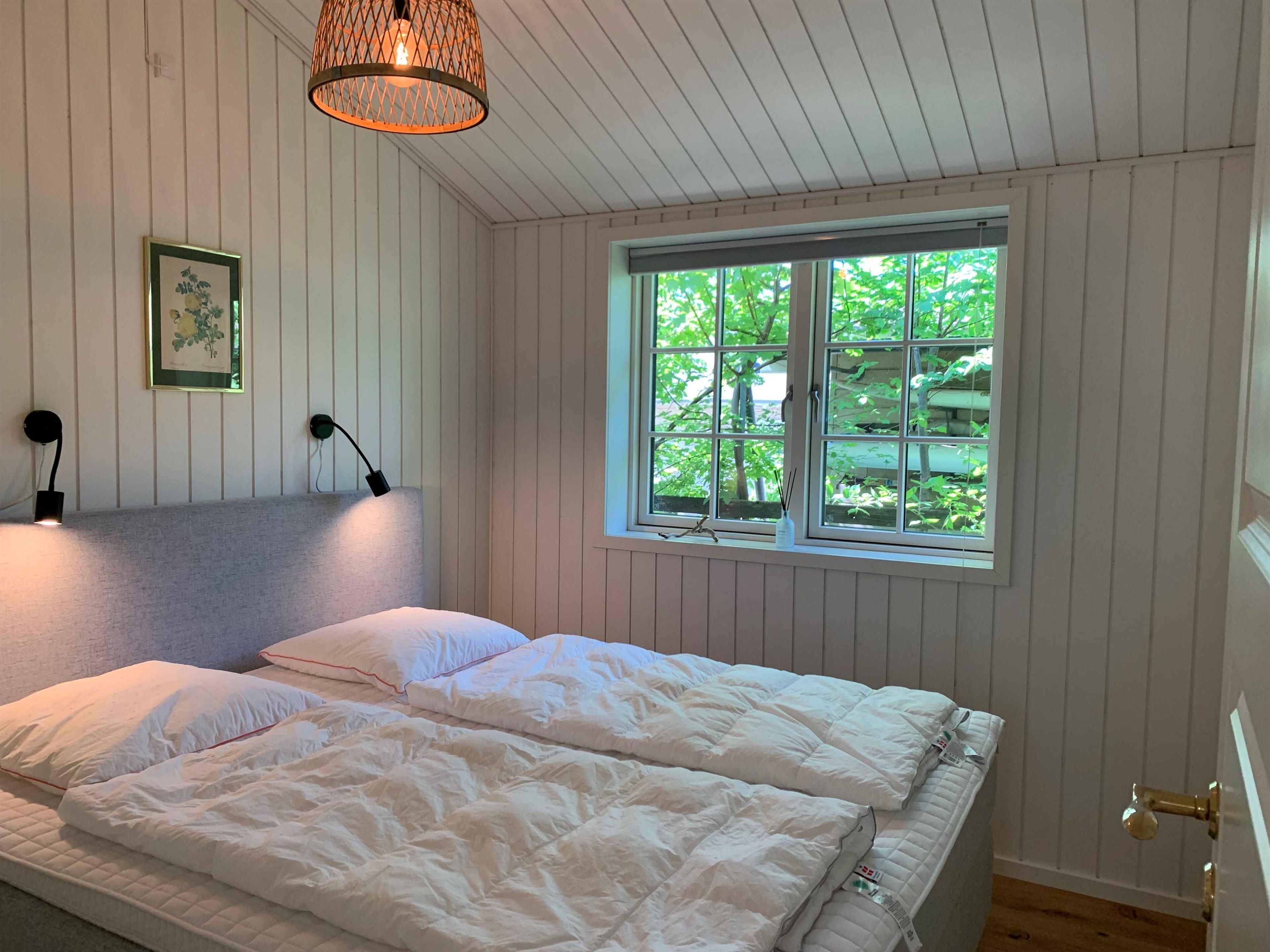 Sommerhus med fantastisk beliggenhed direkte ud til vandet og i kort afstand til stor, offentlig badestrand og skov og kun ca. 3 km fra Rønne centrum. Huset er fra august 2021 og indrettet i lys og let sommerhusstil. Huset indeholder stor, lys stue med loft til kip, åbent køkken og skøn udsigt over vandet. 2 soveværelser med kontinentalsenge (dobbeltsenge 180x200) og 1 soveværelse med 2 enkeltsenge (80x200). Badeværelse med gulvvarme, brusekabine og vaskemaskine. Sydvendt terrasse med sol hele dagen. Der er mulighed for at benytte en gasgrill af mærket Weber Q3200. Udebruser bag huset (kun i sommerperioden). Ejer har bevidst fravalgt fjernsyn, men der er mulighed for streaming via egne tjenester gennem trådløst internet. Huset er beliggende som næstsidste hus på privat grusvej. Udlejes ikke til ungdomsgrupper. Obs, udlejes ikke til erhversmæssigt brug.