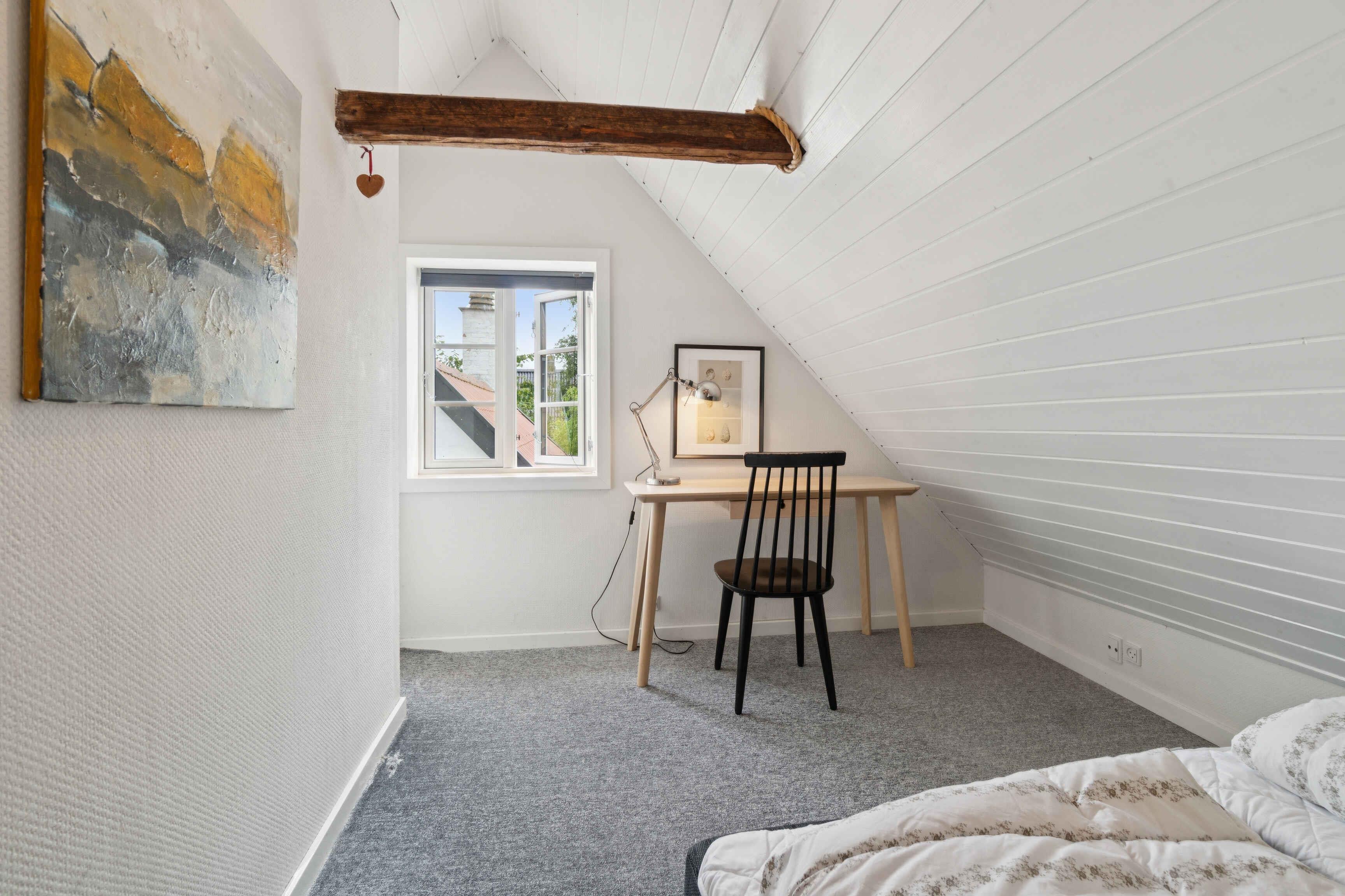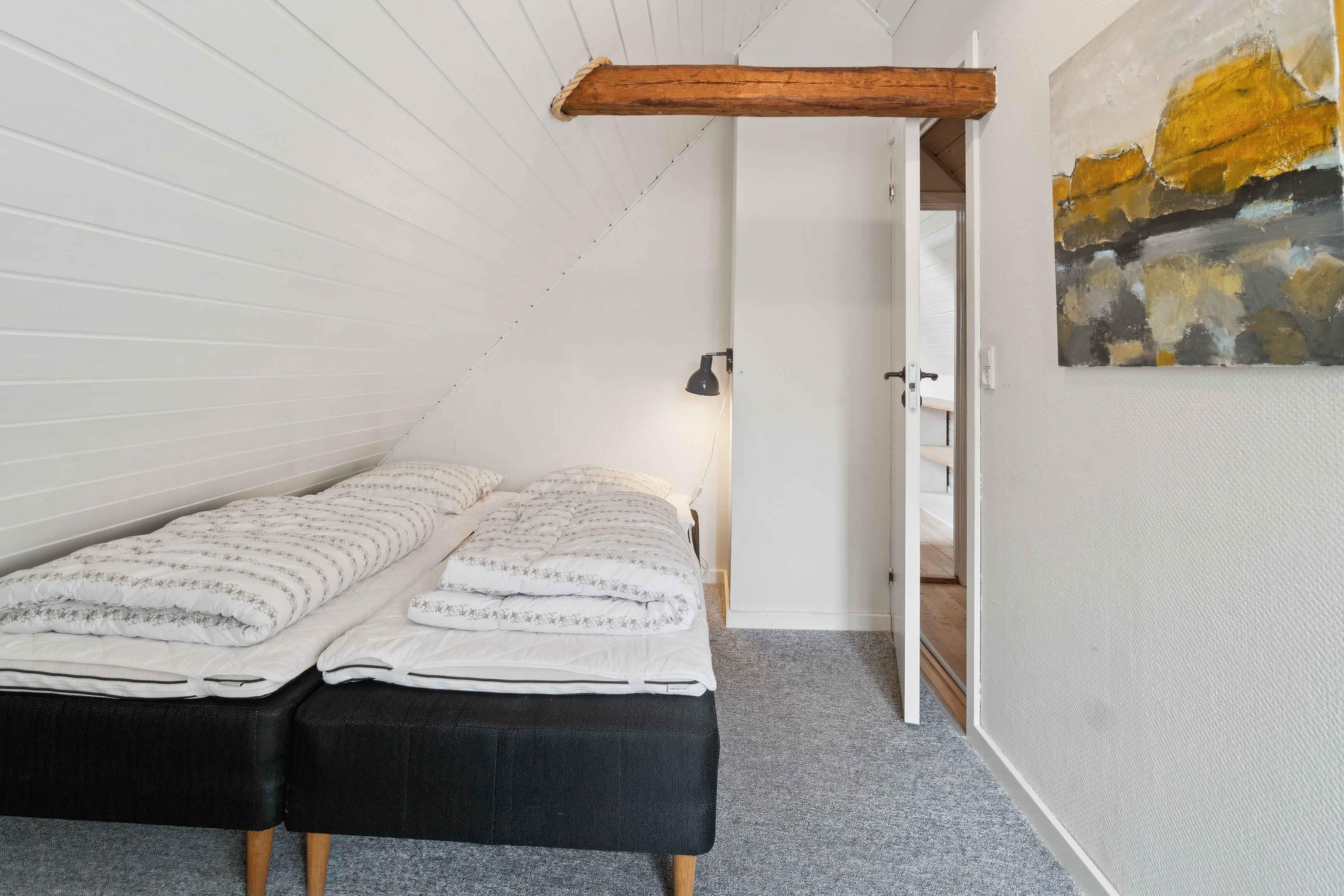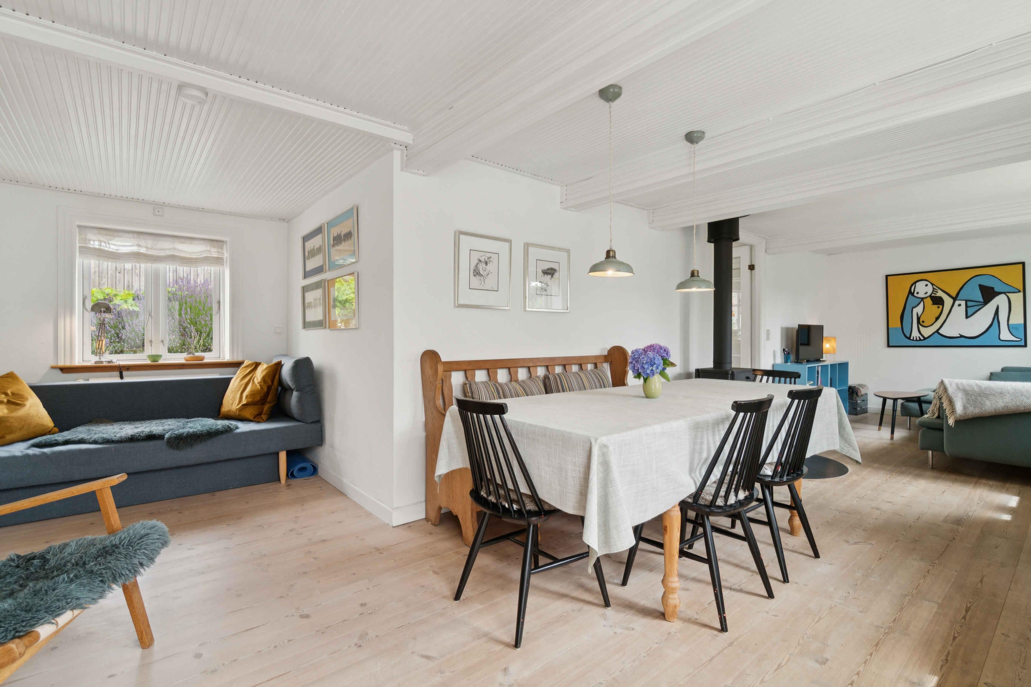 Dejligt sommerhus med historisk charme og privat have. Dette lyse og venlige sommerhus byder velkommen til op til fire voksne og et barn med sine to soveværelser, et badeværelse, en køkken og en stue. På de flotte, delvist overdækkede terasser kan I spise morgenmad og senere lade dagen gå på hæld ?med et godt glas vin. I kan slappe dejligt af i haven, hvor børnene har god plads til at lege. En grill er til rådighed til hyggelige grillaftener. Den nærmeste strand ligger kun 100 m væk. Her kan I bade, dyrke vandsport, slappe af, fiske eller bare gå en skøn tur. Der er en legeplads omkring 200 m væk.
