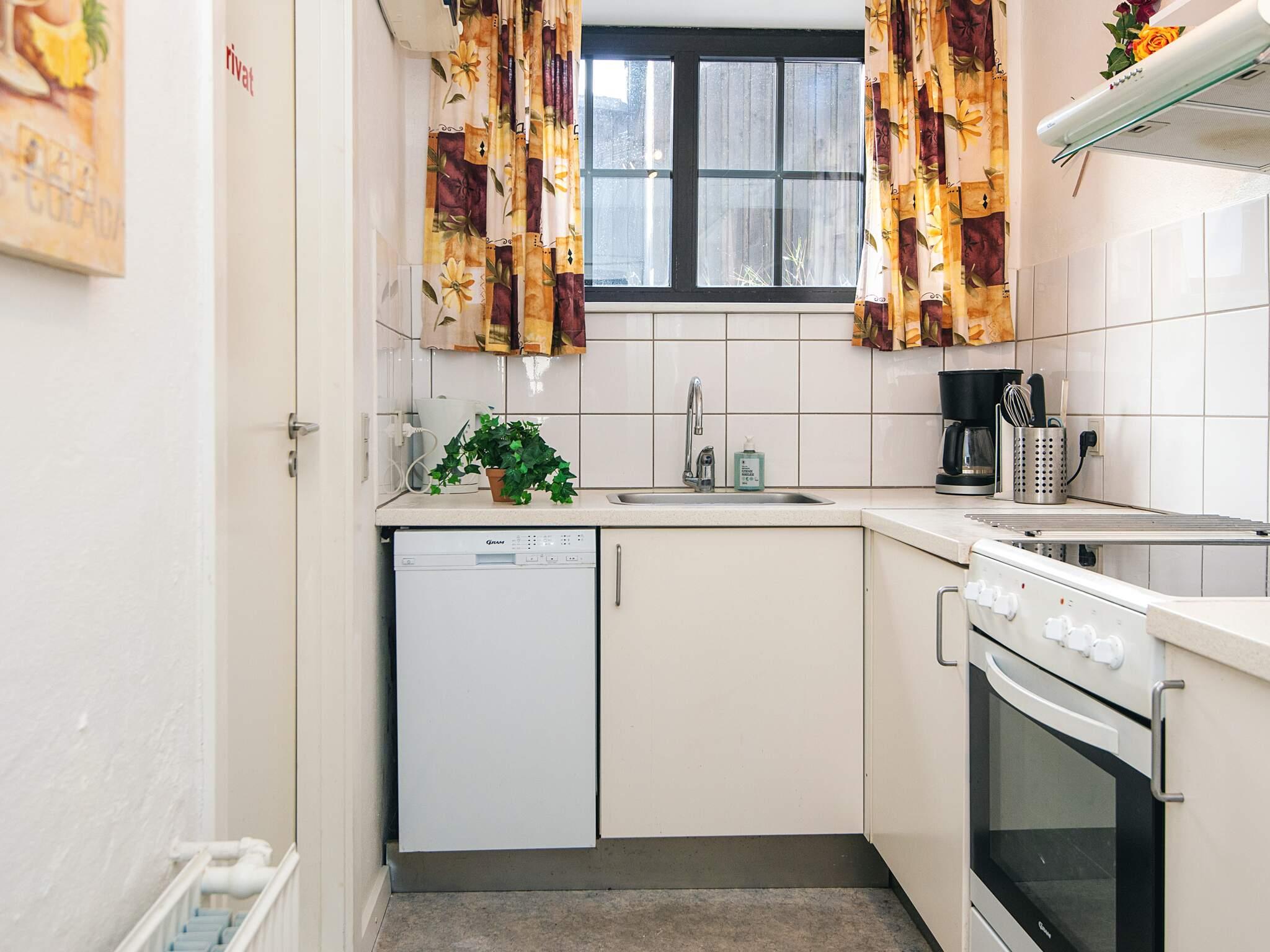 Køkken: El-komfur, køleskab m/frostboks, mikroovn, kaffemaskine, opvaskemask.