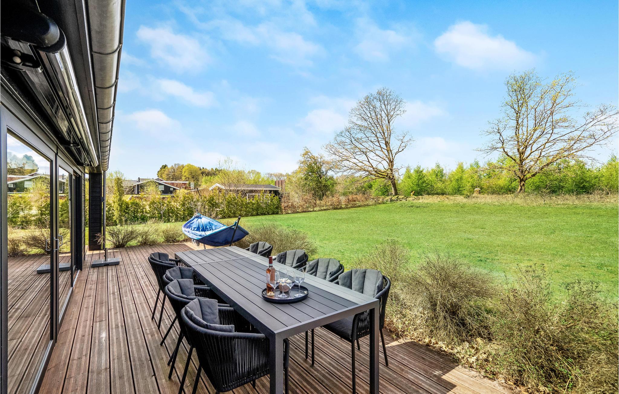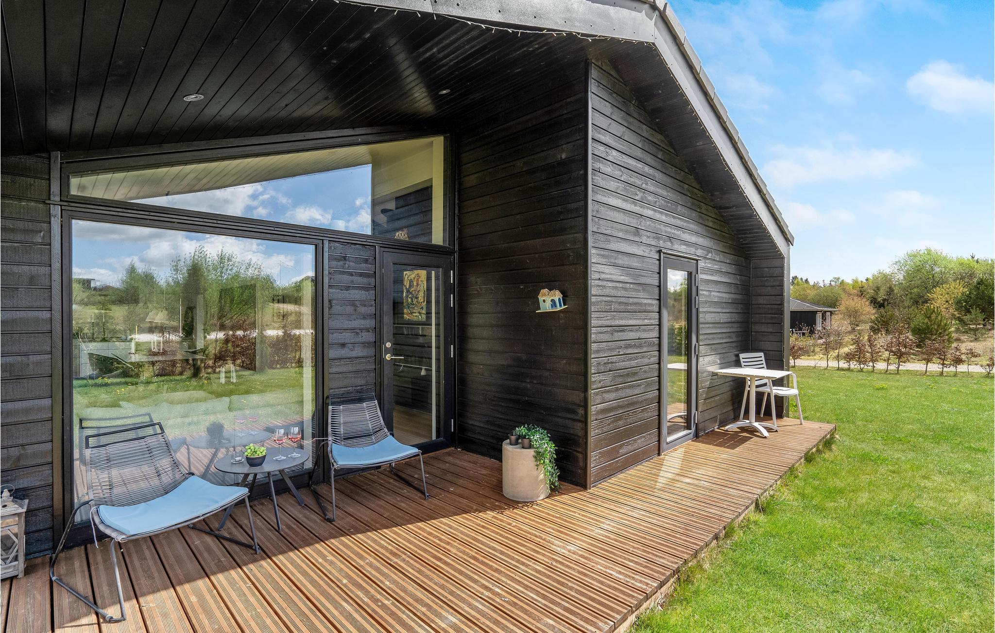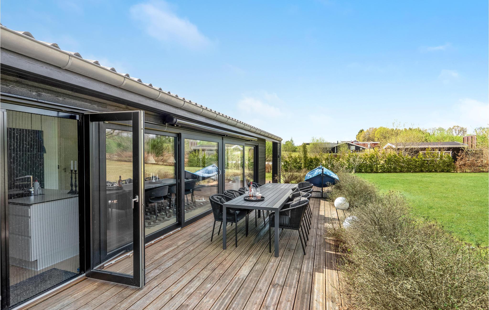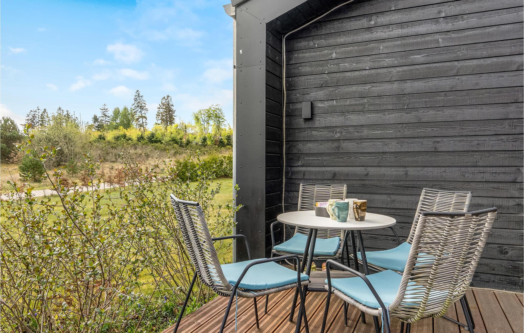 Rundt om huset er der terrasser med gode havemøbler. Den store vestvendte terrasse vil helt sikkert blive samlingssted til hygge, afslapning og skønne feriemiddage med et godt glas vin eller en frisklavet pizza fra den udendørs pizzaovn. Udendørs spaen står klar til jer, når I ankommer, så ferien kan allerede fra første øjeblik begynde med afslapning i tusindvis af bobler - måske afsluttet med en tur i sauna, med indgang fra terrassen.