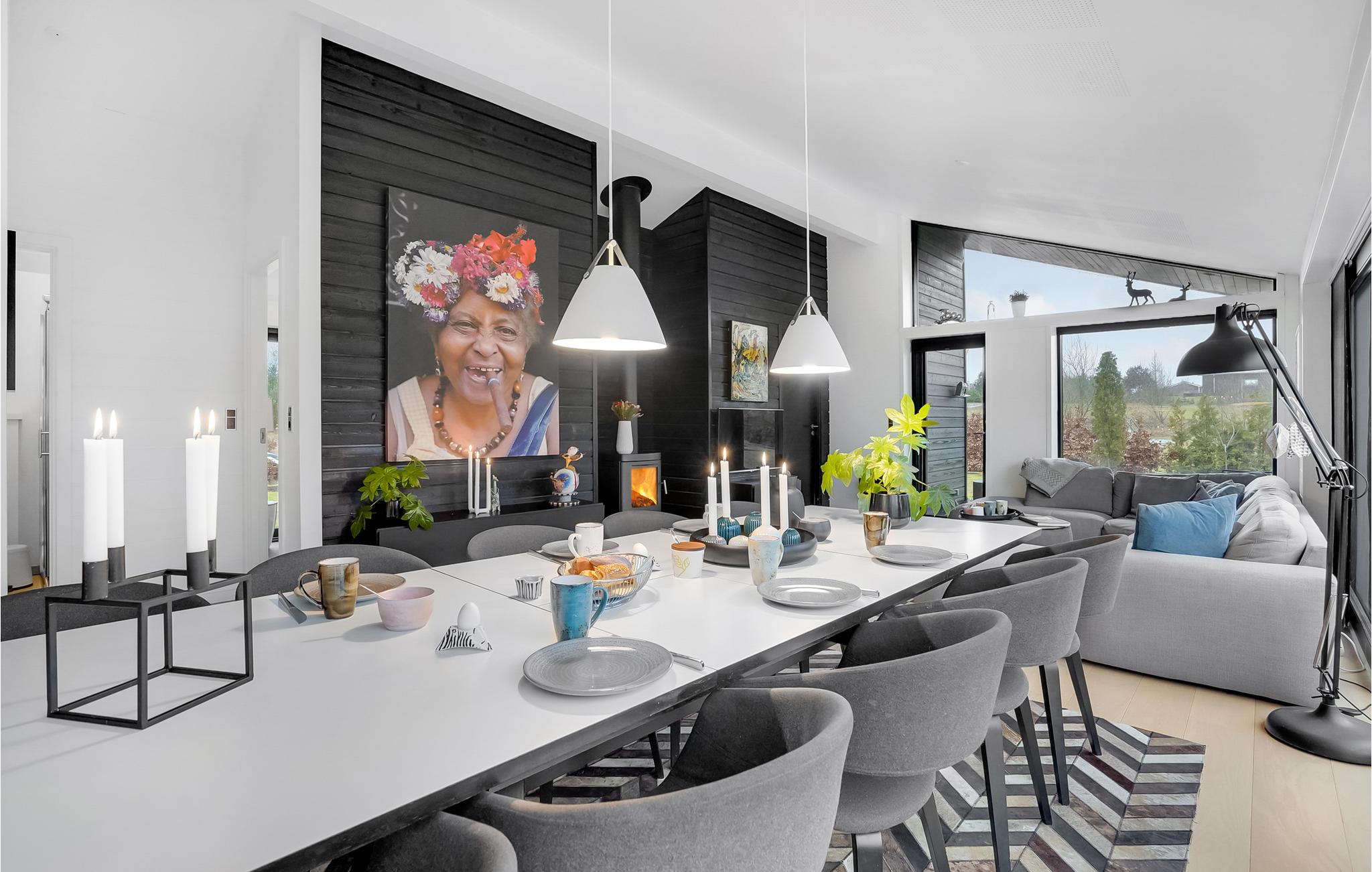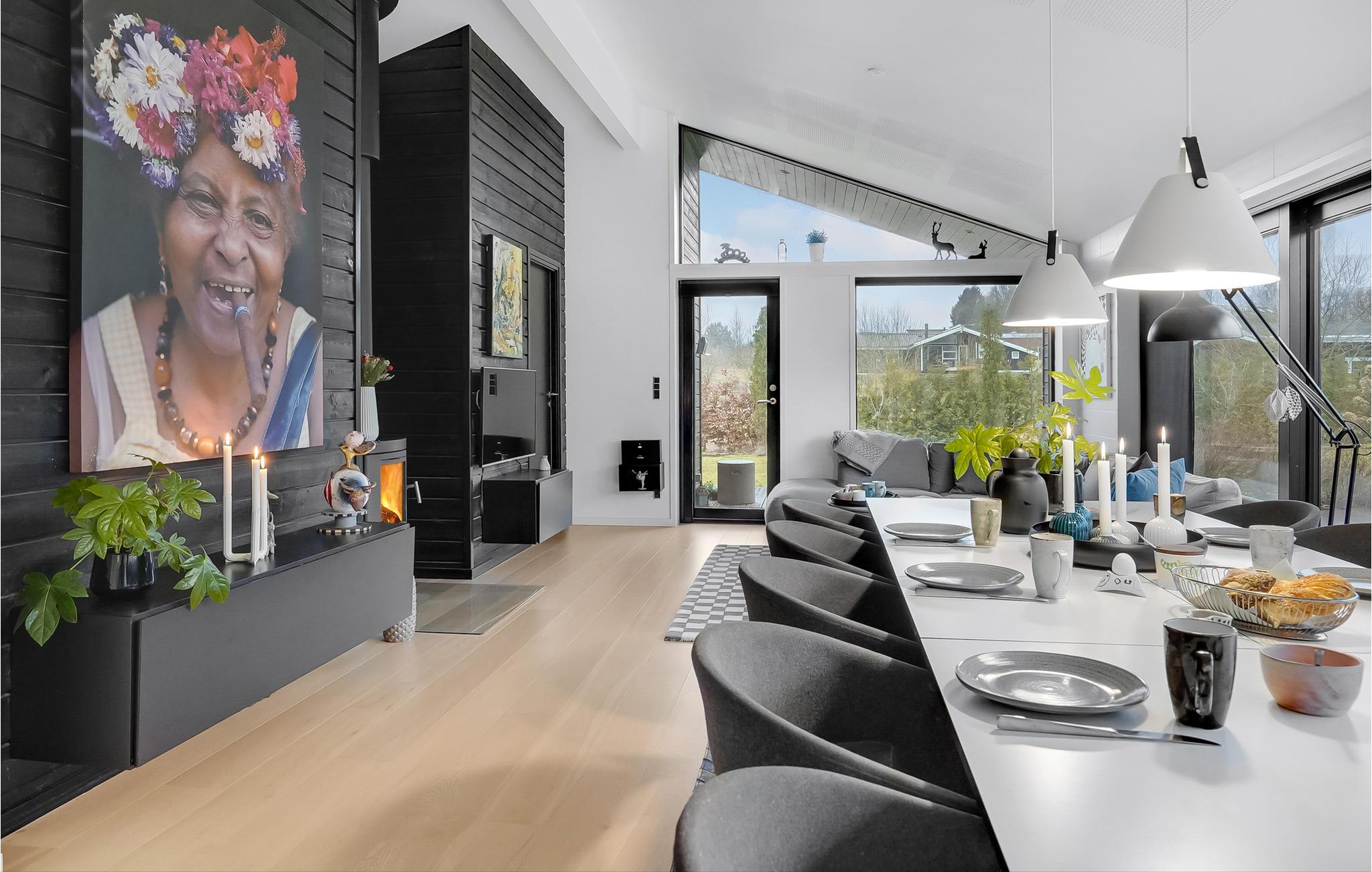 Huset er indrettet med moderne møbler, med charme og i en stil der får huset til at emme af feriestemning. Her findes en stor spise- og opholdsafdeling samt et aktivitetsrum der helt sikkert vil være et hit for både børn og barnlige sjæle og med en stor skærm til Wii eller PlayStation-spil, kan I få mange timer til at gå, selv på en gråvejrsdag.